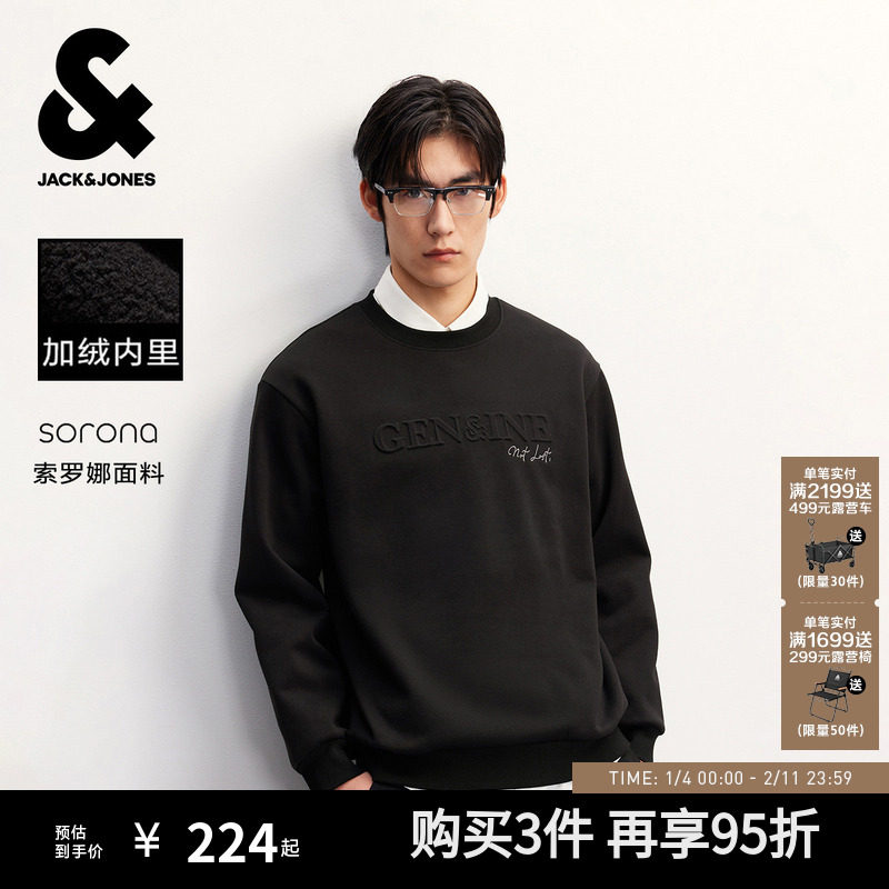 【四方来财加绒卫衣】杰克琼斯男装2025年秋季新款立体钢印外套