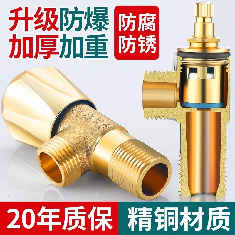 全铜三角阀黄铜本色加长加厚冷热水器马桶冷热水开关家用止水阀门