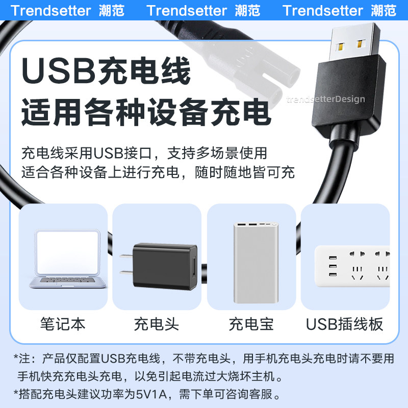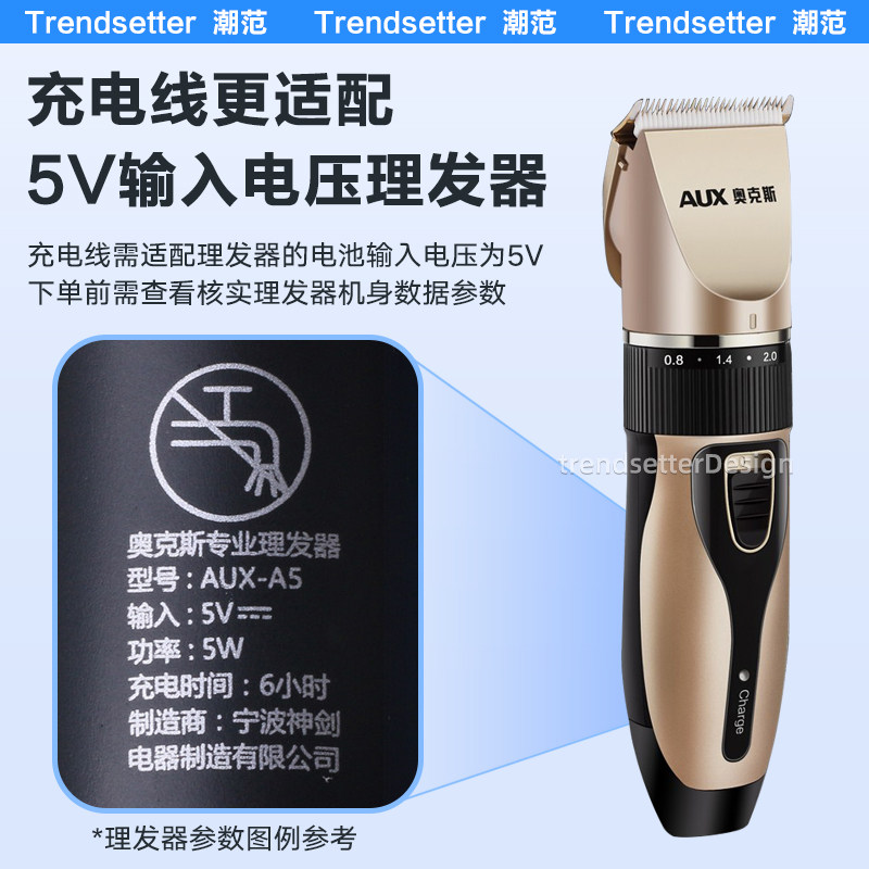 适用AUX奥克斯理发器充电线电推剪子充电器A1/A5/A6/A7/A8/S7/S8/X1剃发器电源线配件