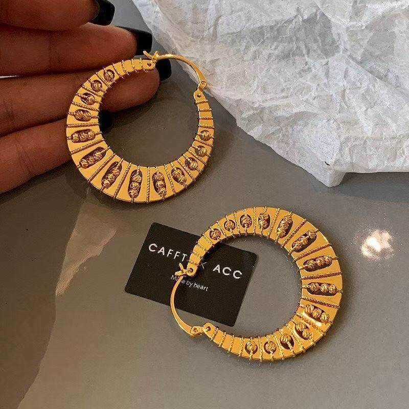 欧美老钱风金色绝美独特夸张大圆圈耳环圈圈女轻奢高级感耳饰女秋