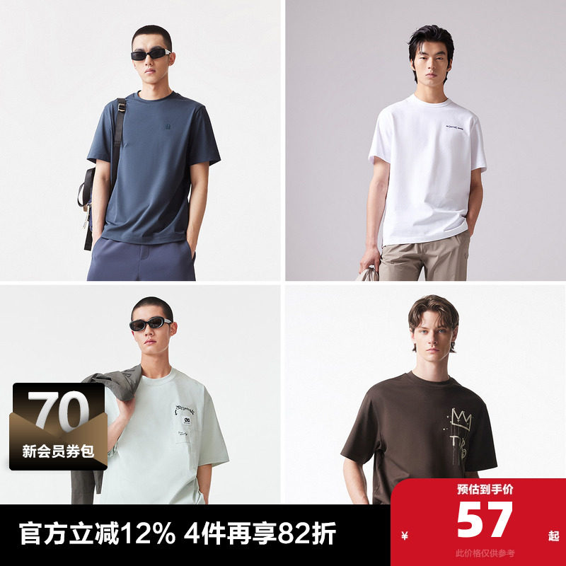 【短袖T恤清仓】杰克琼斯夏季情侣短袖T恤纯棉透气凉爽男装