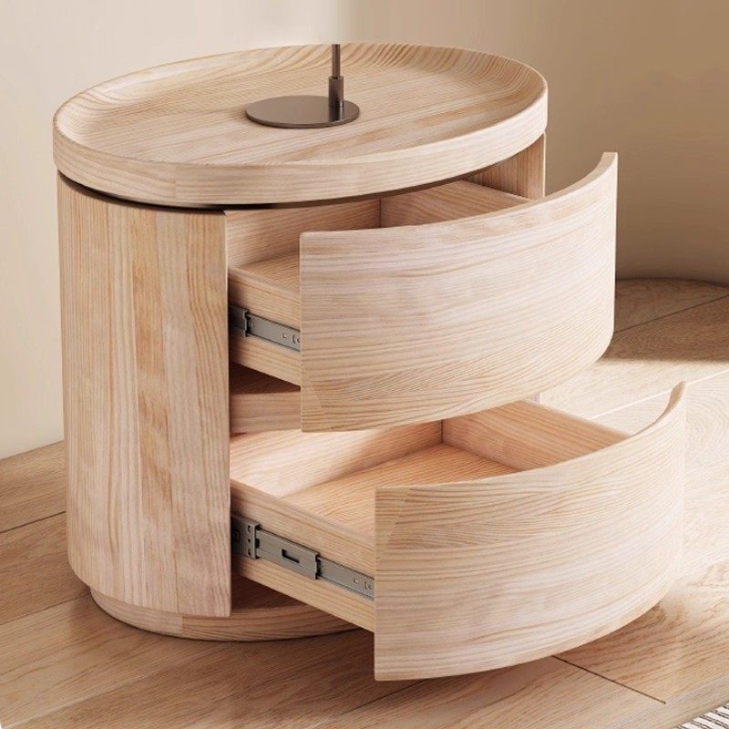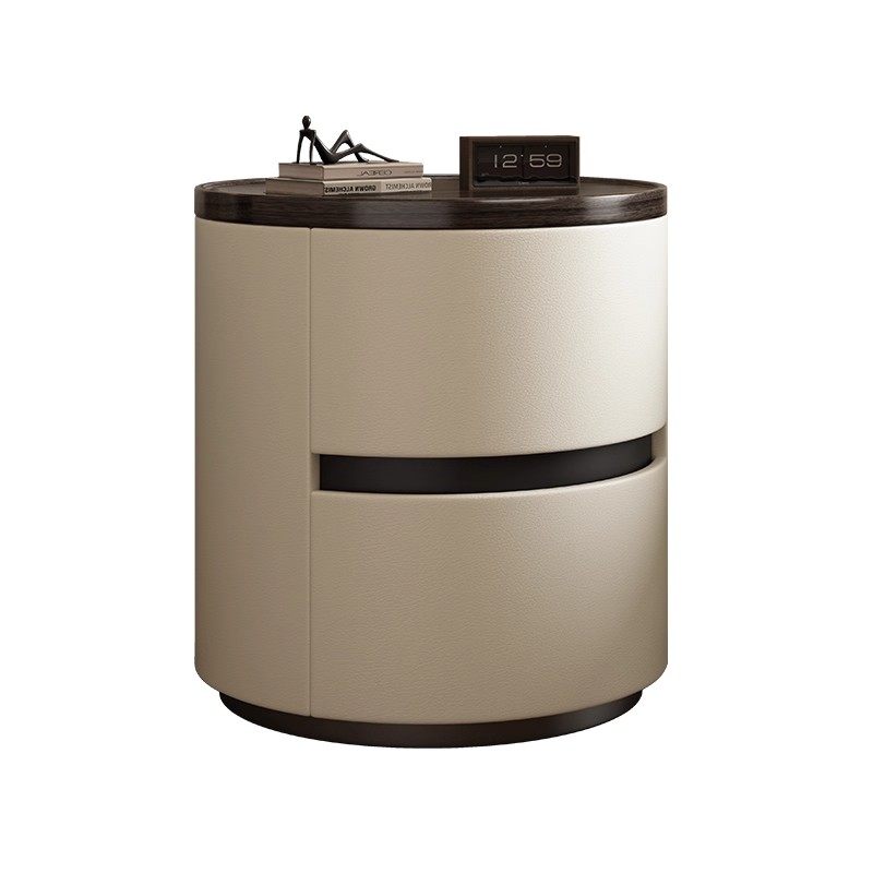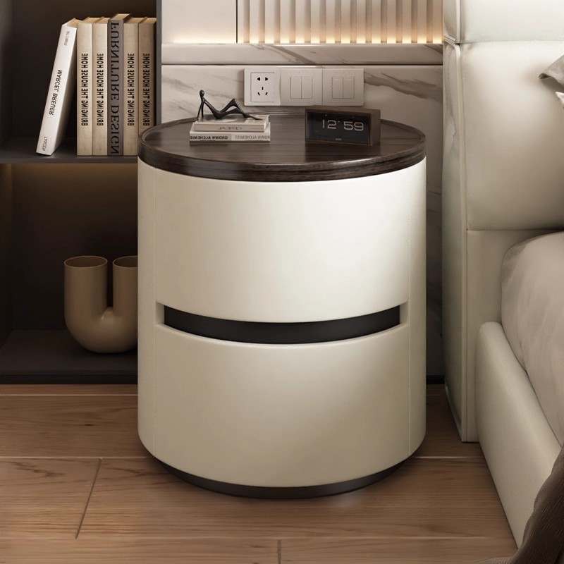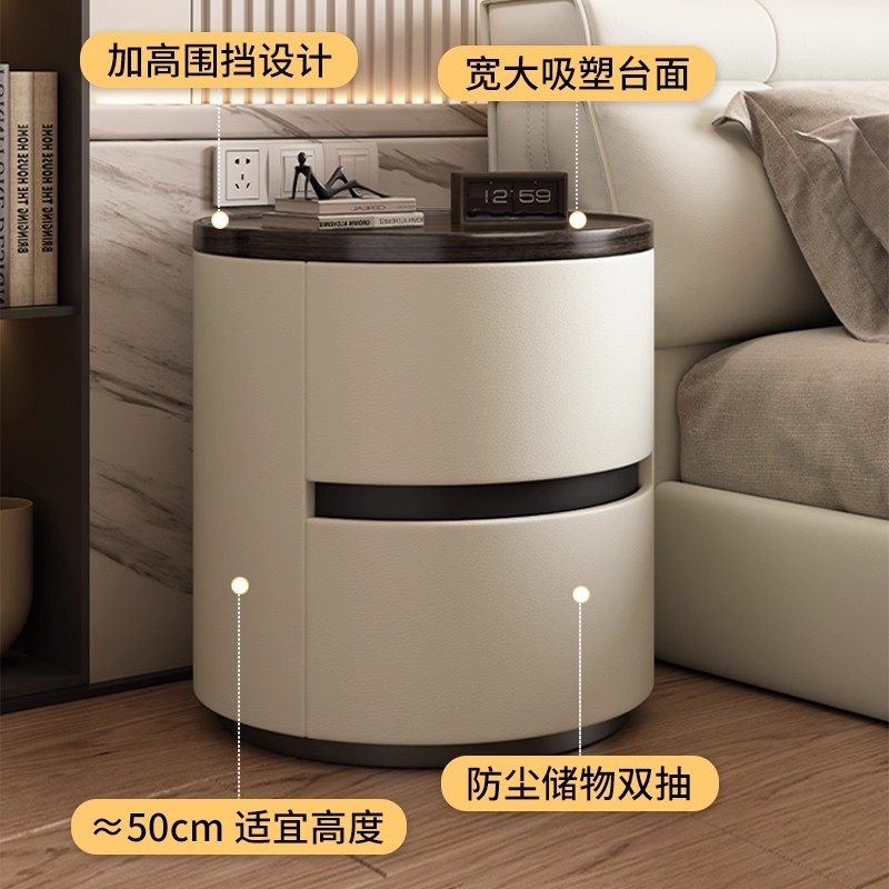 圆形实木床头柜意式极简皮质圆柱型储物柜设计师床边柜高级感ins