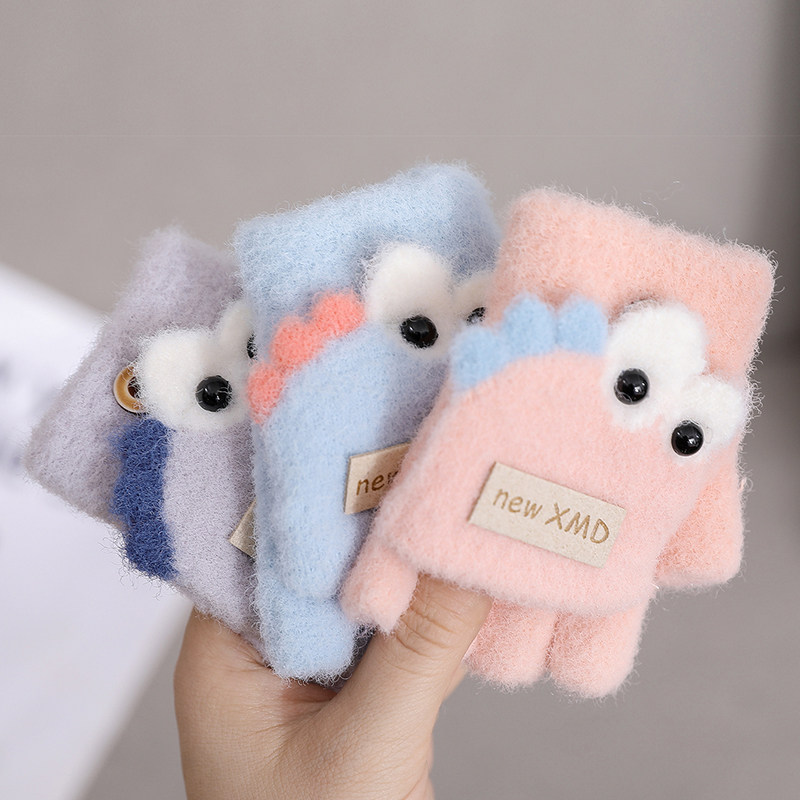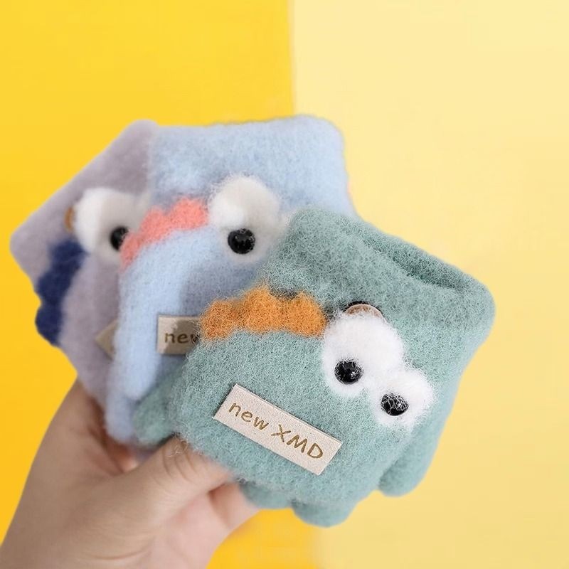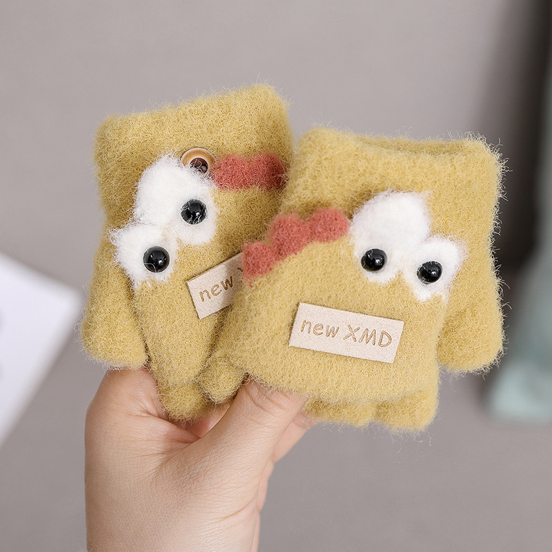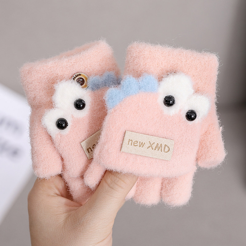 宝宝手套0-3岁岁儿童五指翻盖露趾男女童秋冬季加绒保暖半指写字