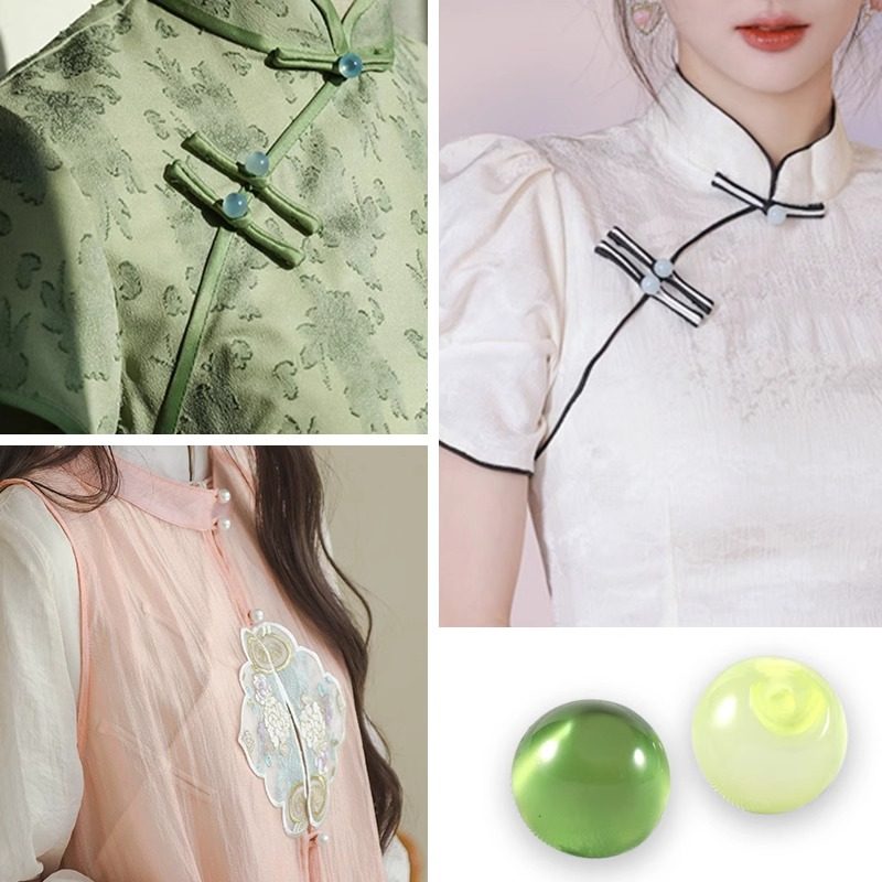 圆形旗袍扣子国风仿玉石盘扣雪纺衬衫珍珠小纽扣蓝色红色粉色紫色