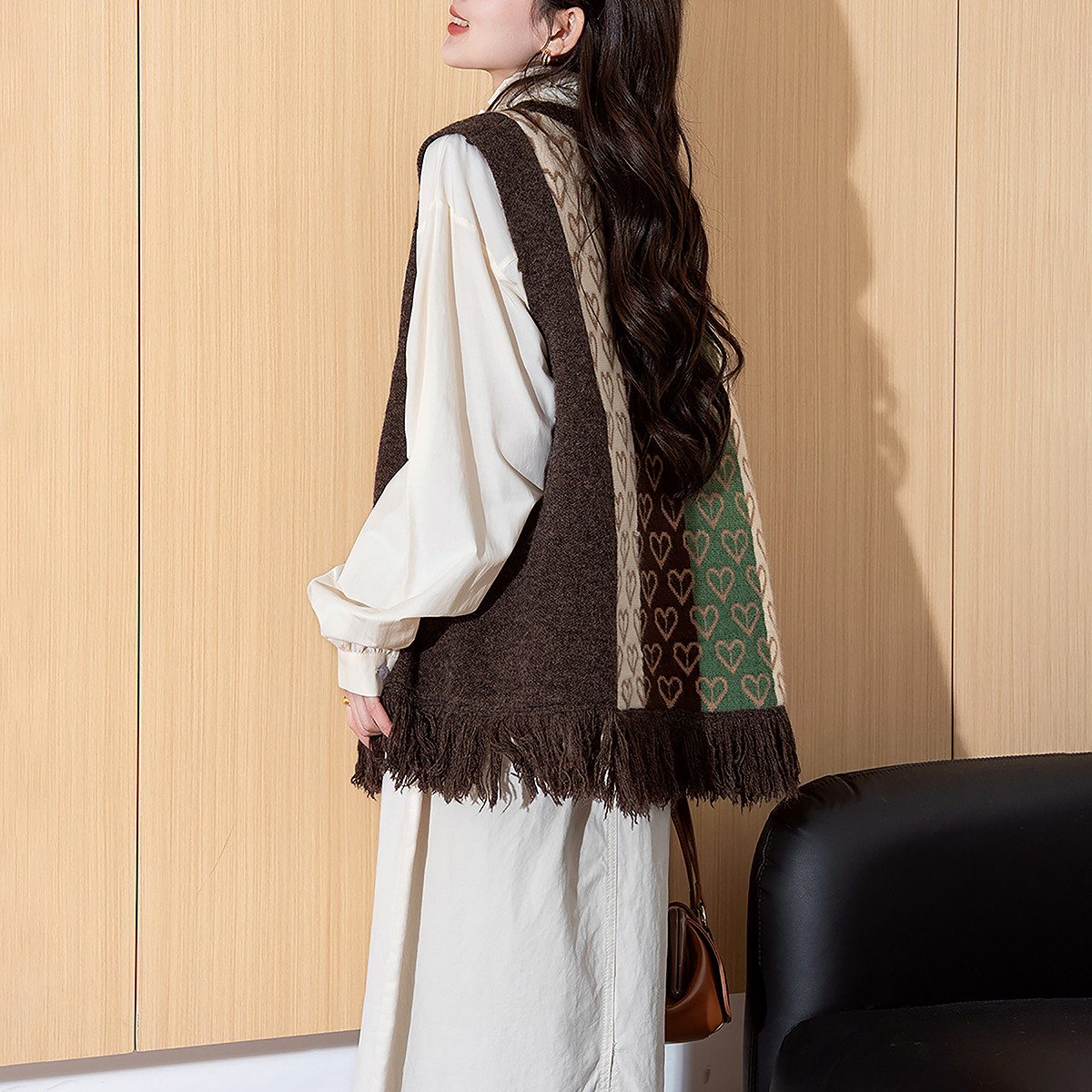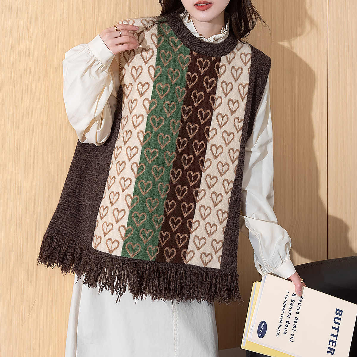 唐狮秋冬毛衣女复古风流苏下摆套头马甲外穿高级感百搭instu