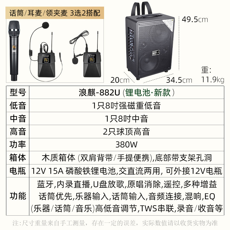 浪麒电吹管吉他萨克斯乐器专用音响户外k歌露营店铺便携充电音箱