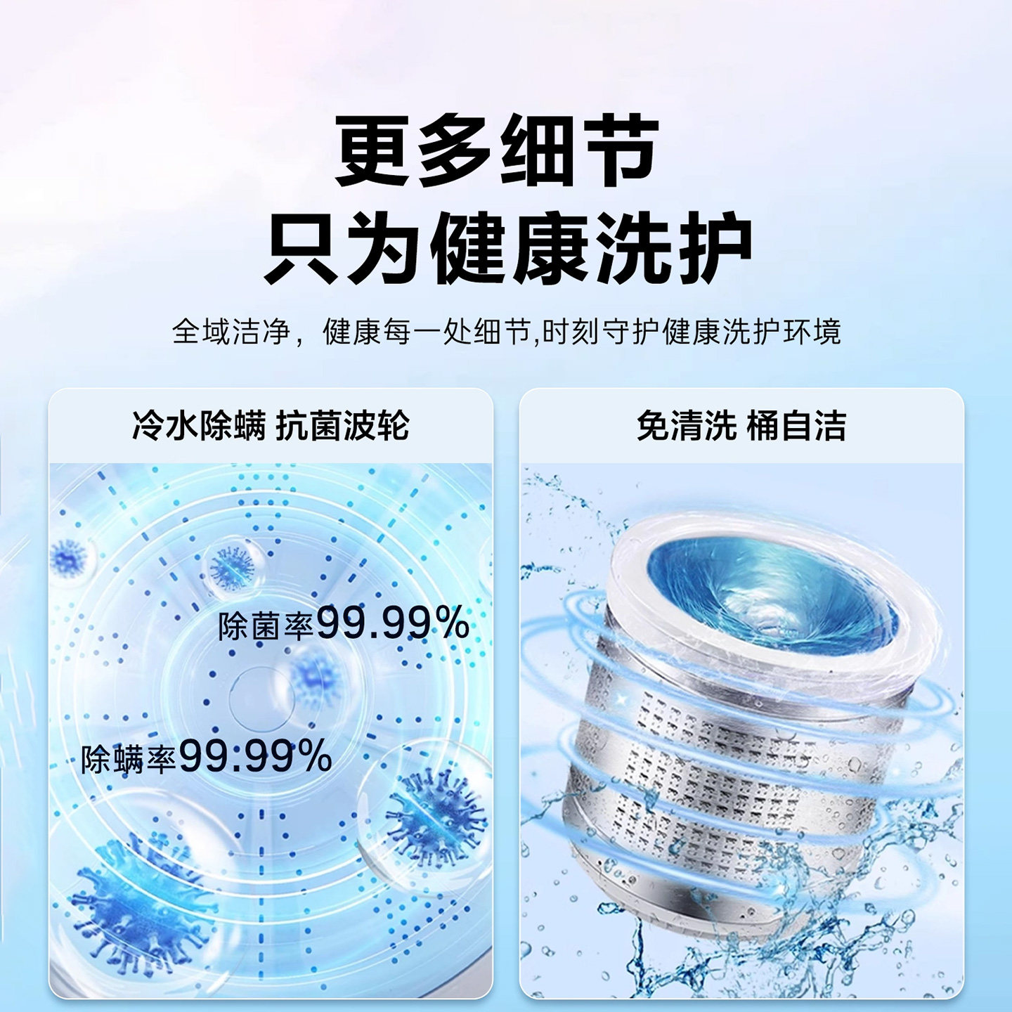 抗菌波轮 纯净洗衣 筒自洁 机身小巧不占地