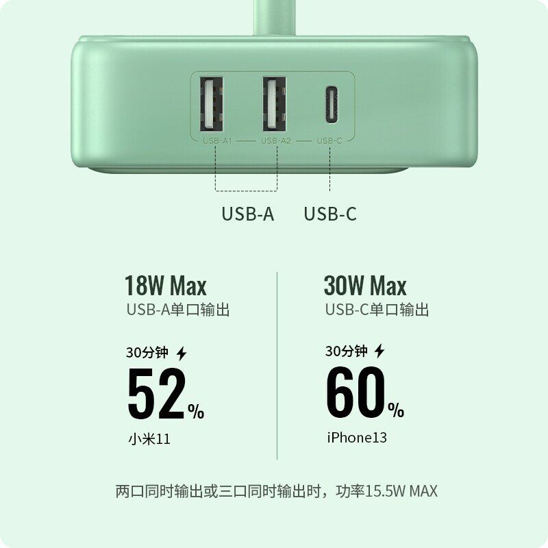绿联30W100W智充魔盒苹果PD快充头充电器插座智能排插USB充电接线板适用平板 抹茶绿30W智充魔盒(60699)