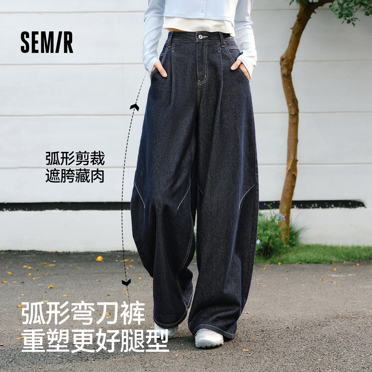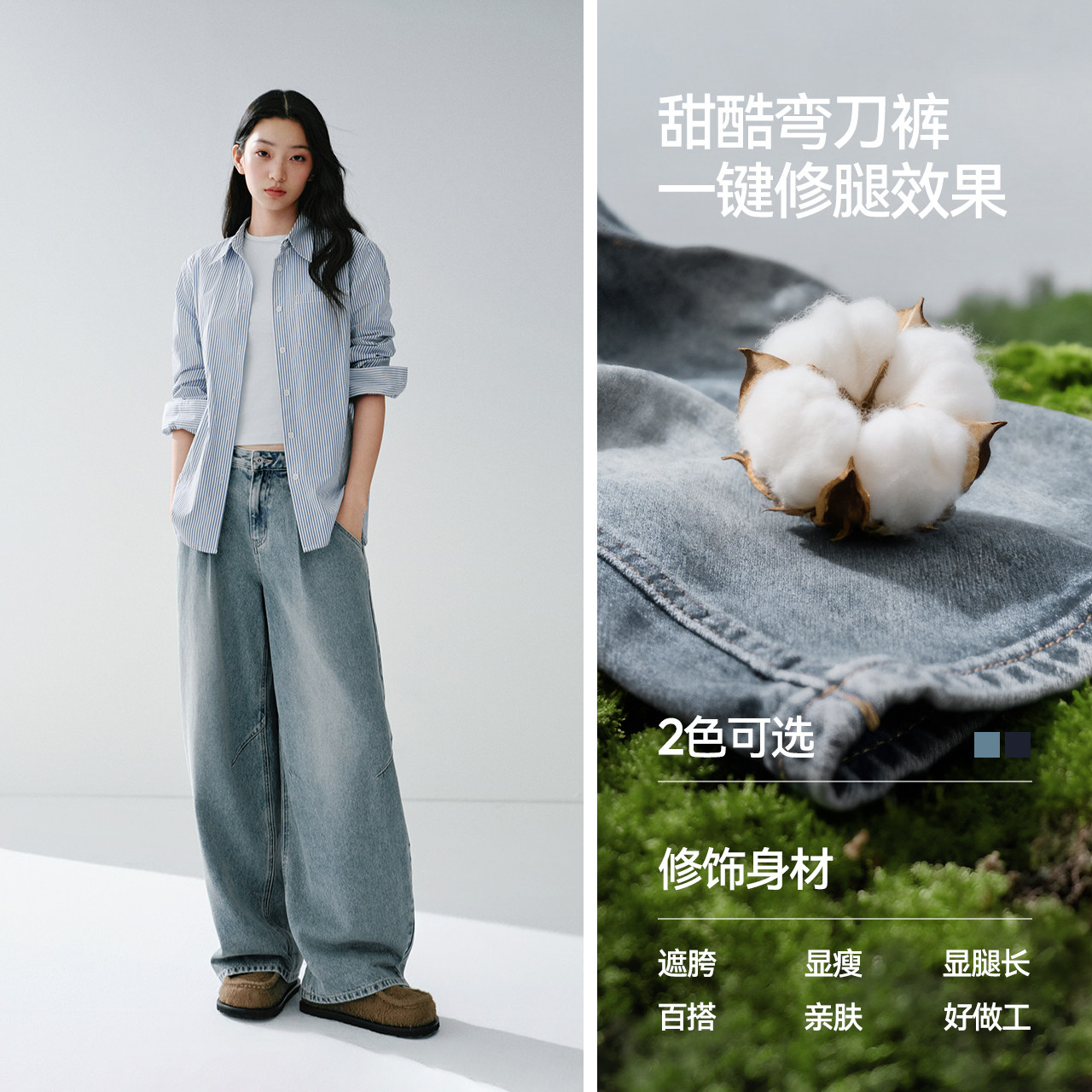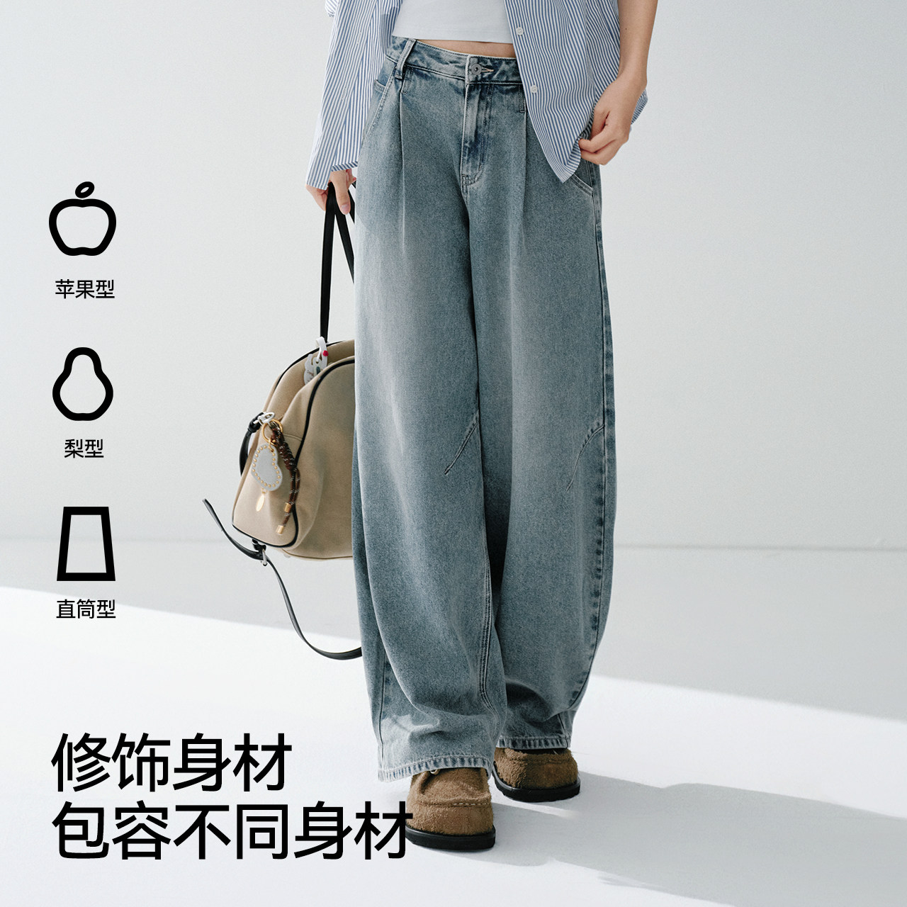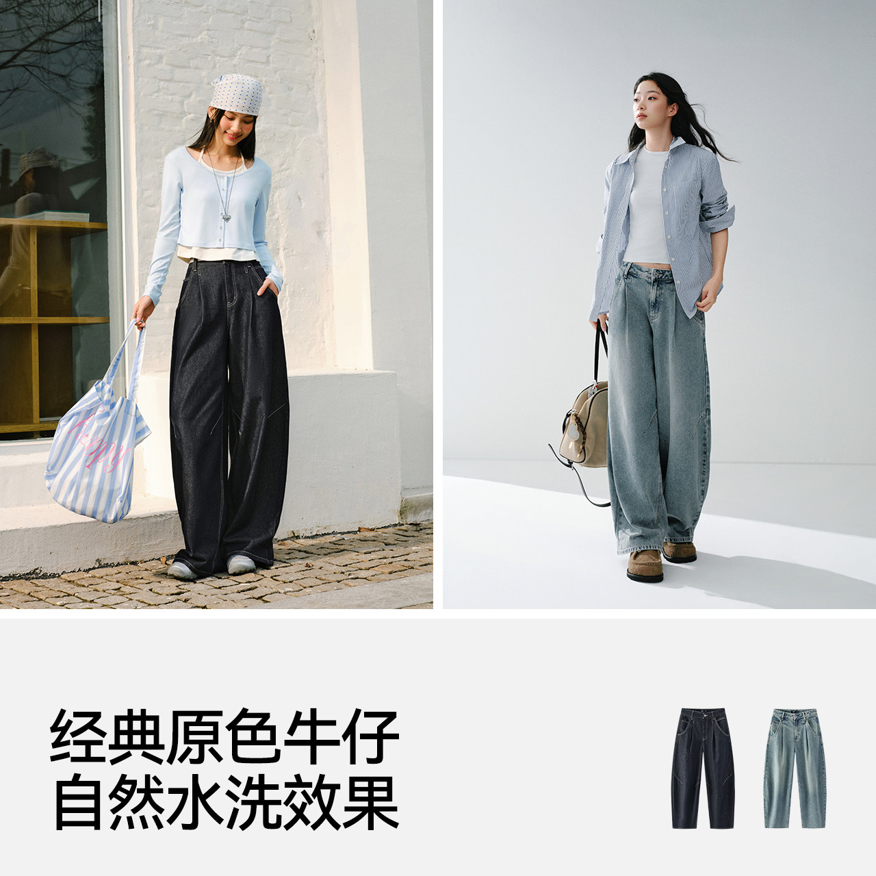 森马牛仔裤女春季打褶长裤宽松2026新款弯刀裤甜酷美式高街阔腿裤