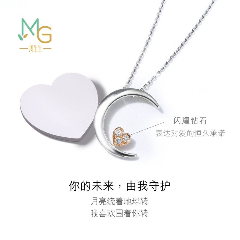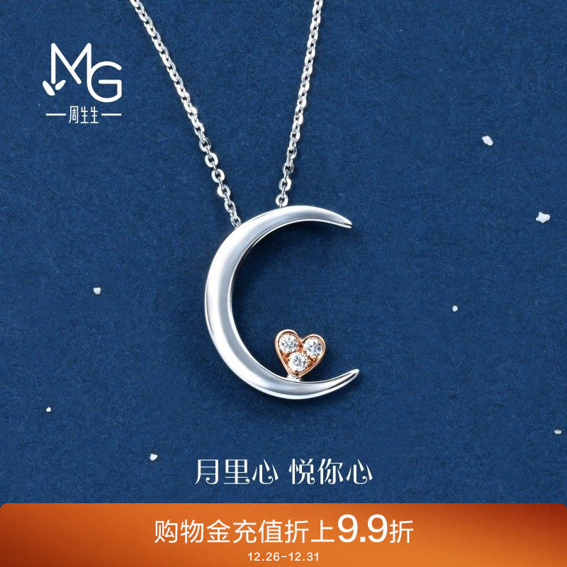 周生生爱情密语月亮悦你心钻石项链18K金套链89634U
