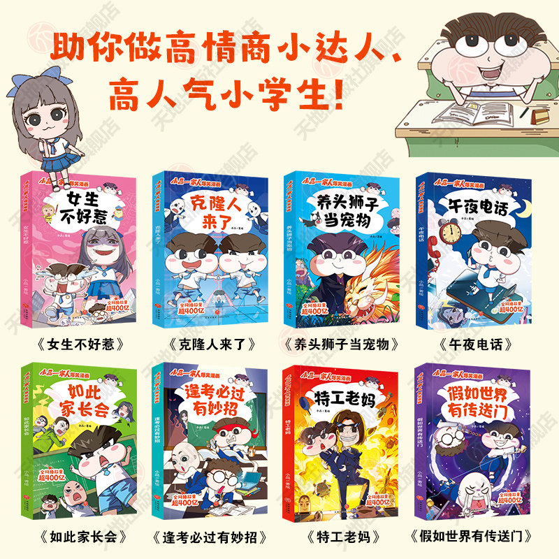【赠字帖】小品一家人爆笑漫画全8册让孩子从手机迷变成小书虫的漫画 小品如何机智处理亲子关系师生关系及同伴关系做高情商小学生