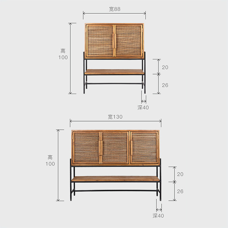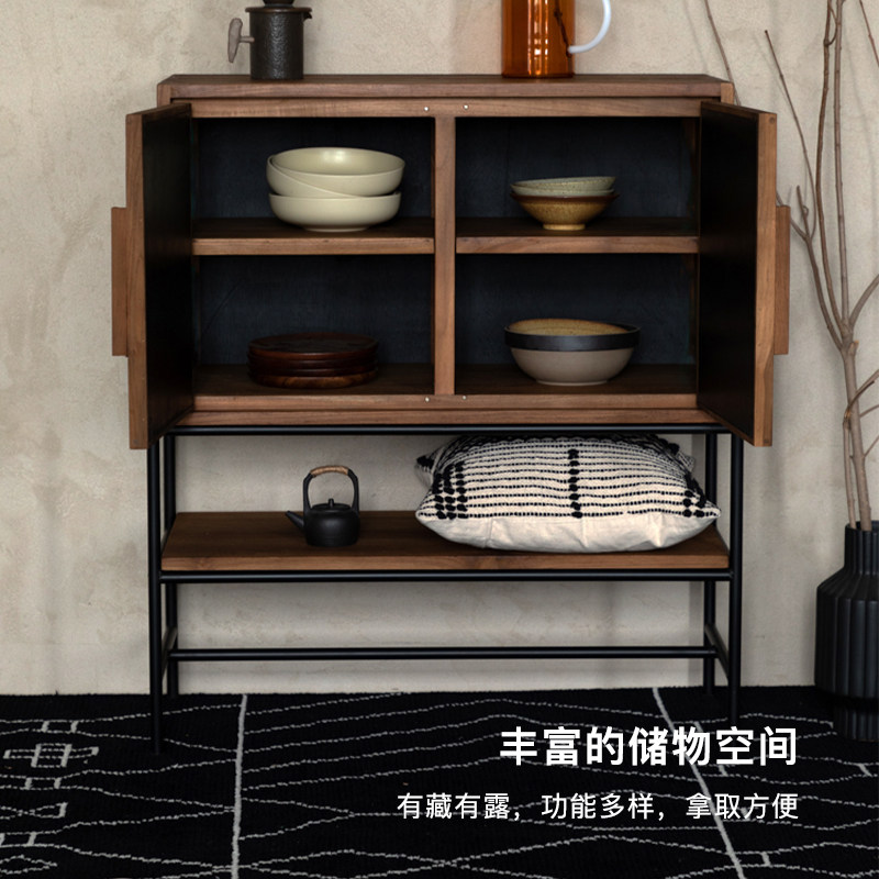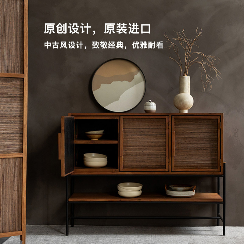 MountainLiving进口老柚木家具实木餐边柜靠墙一体储物柜成品半高