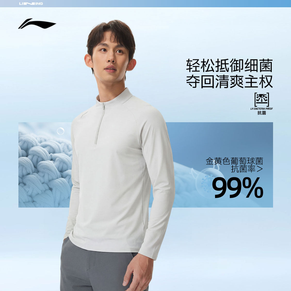 李宁长袖T恤男士官方新款健身跑步内搭上衣休闲针织男装运动卫衣