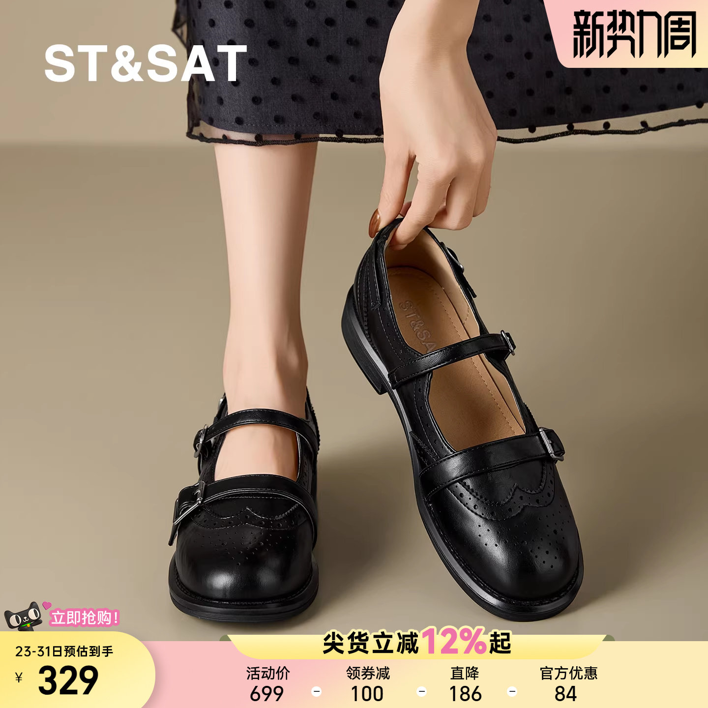 星期六英伦风布洛克雕花玛丽珍鞋女春季新款双扣带小皮鞋复古单鞋