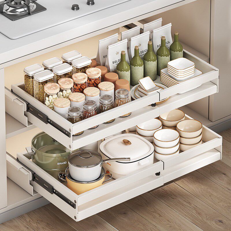 热销拉篮厨房橱柜抽屉式碗架收纳内置碗篮碗碟柜内抽拉