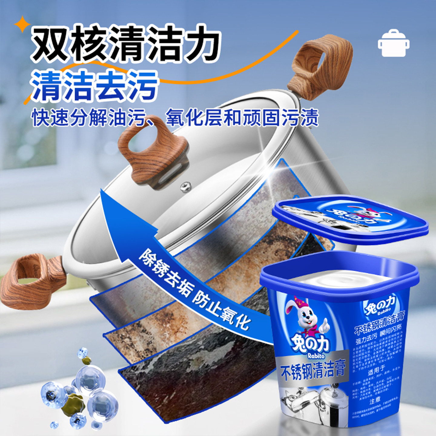 兔力不锈钢清洁膏家用焦渍厨房清洁剂洗锅底黑垢去除强力除锈神器