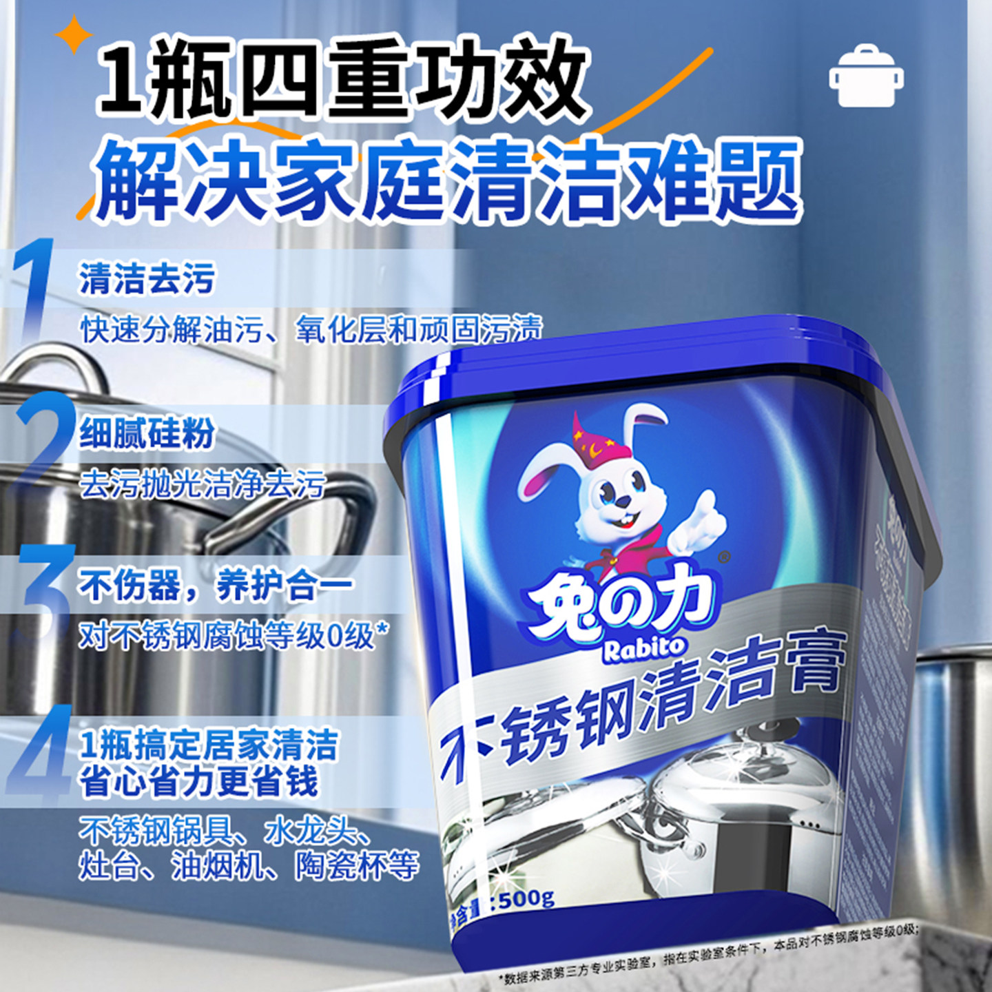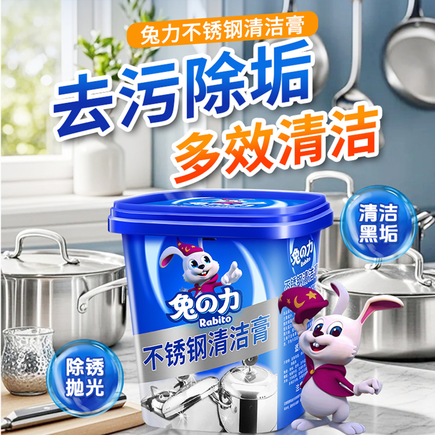 兔力不锈钢清洁膏锅底黑垢清洁剂家用厨房烧焦去油污渍去锈垢光亮
