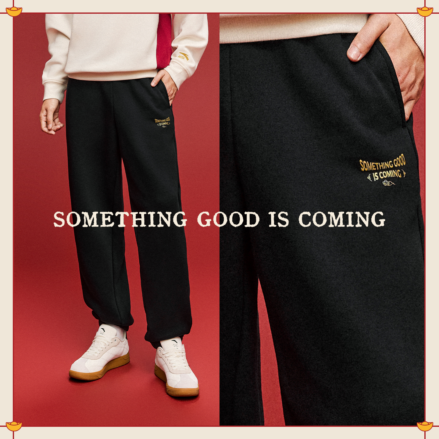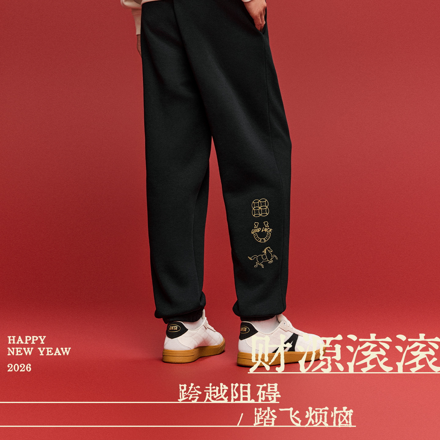 安踏好事发生丨加绒运动卫裤男春季刺绣印花休闲长裤子152618308
