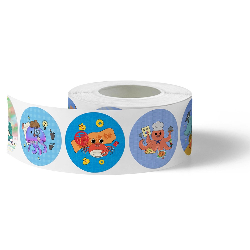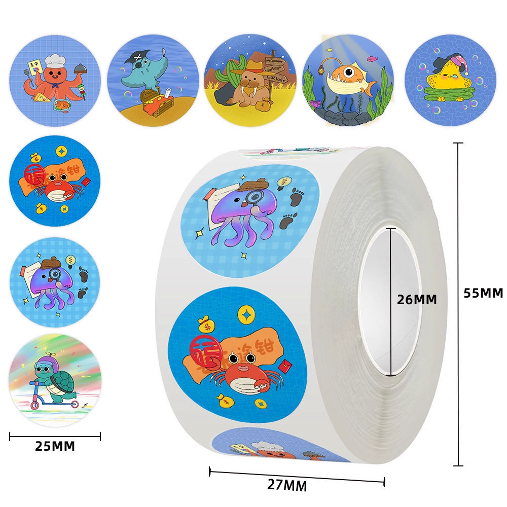2000贴卡通海洋生物海龟水母等卷卷贴纸创意彩绘儿童可爱封口贴画