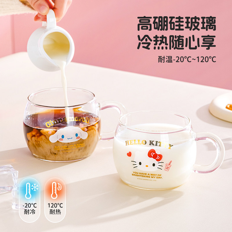 三丽鸥玉桂狗高硼硅耐热玻璃杯女生高颜值水杯家用儿童牛奶早餐杯