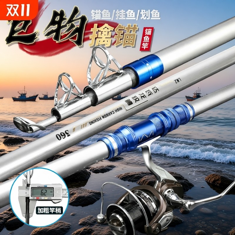 锚竿锚杆锚鱼竿超轻超硬巨物竿抛竿远投挂鱼海竿金属碳素碳纤维