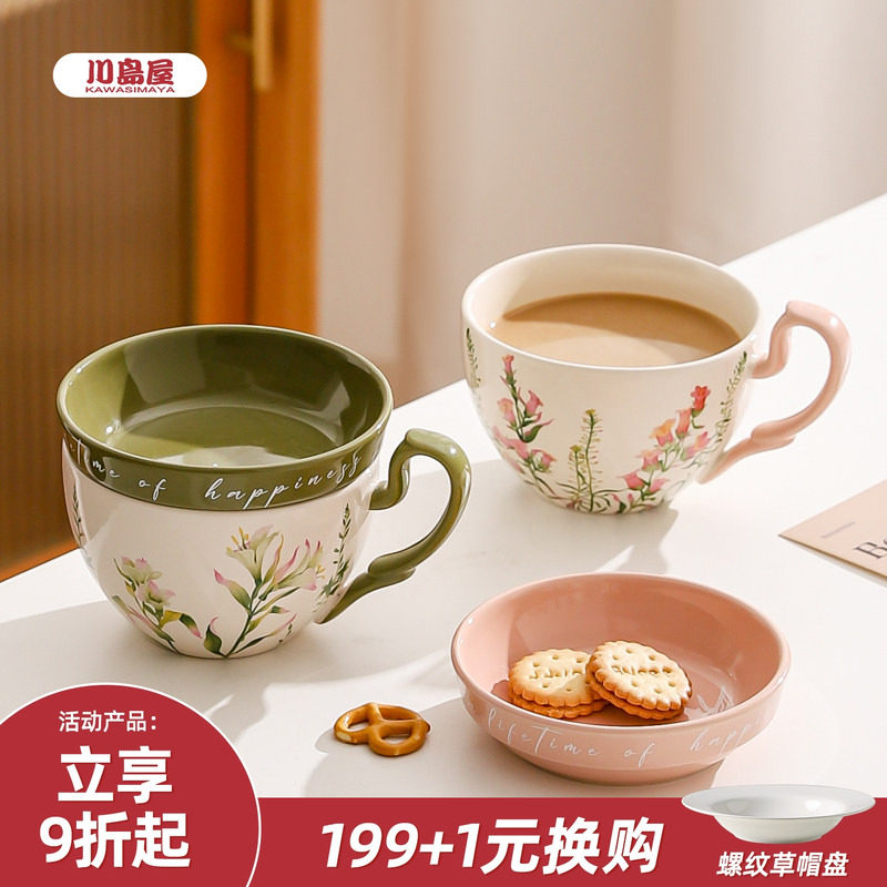 川岛屋大容量咖啡杯女士个人专用马克杯陶瓷带盖燕麦牛奶早餐杯子