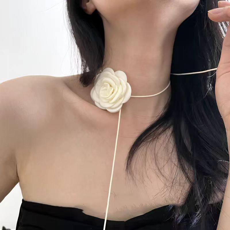 玫瑰花项链女生款choker颈花黑色花朵项圈颈带山茶花脖子配饰颈链