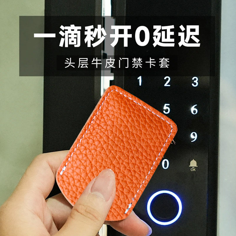 门禁卡套水滴形真皮小长方形门卡钥匙扣链一体小区电梯卡包保护套