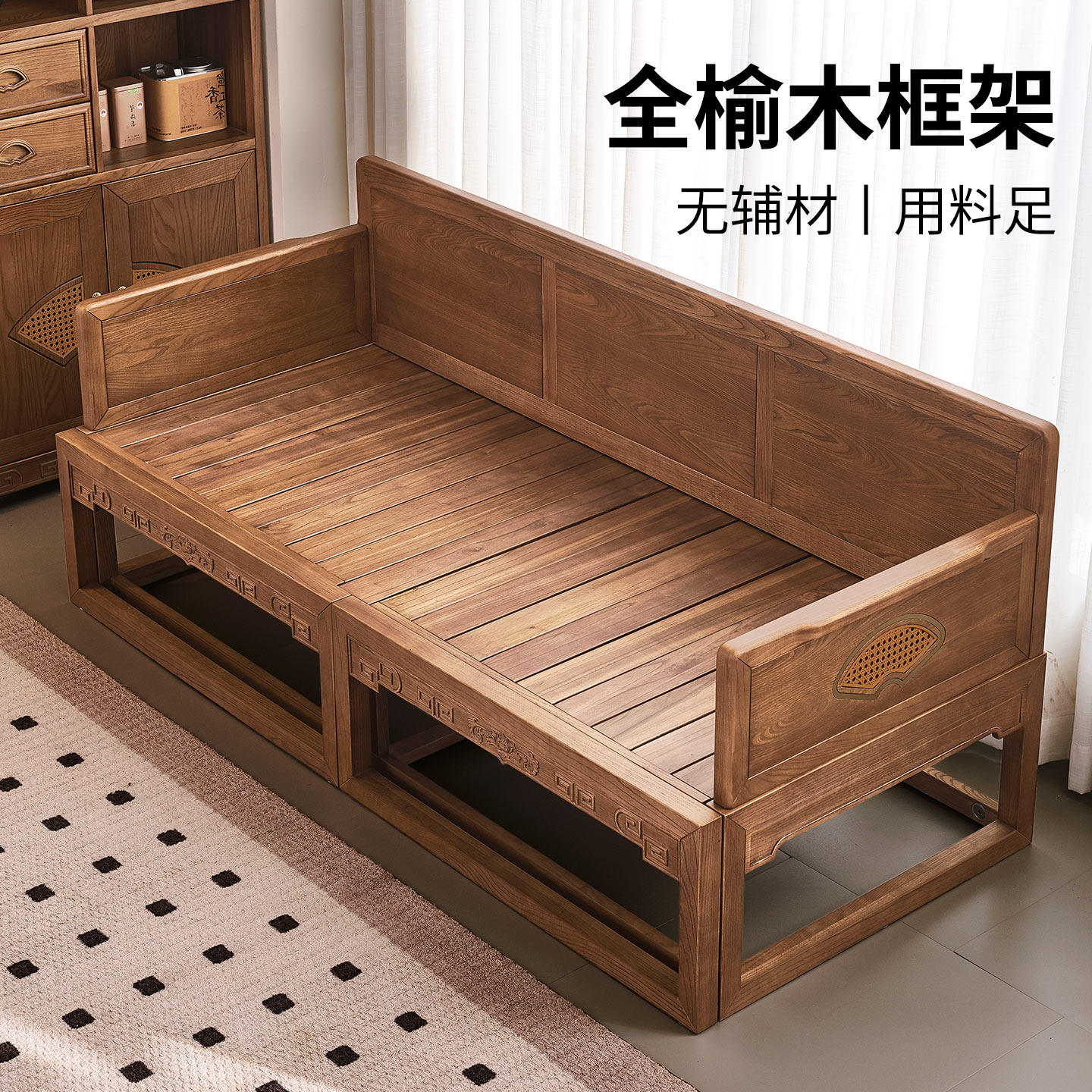 政府补贴新中式榆木罗汉床实木沙发床两用客厅大小户型冬夏两用