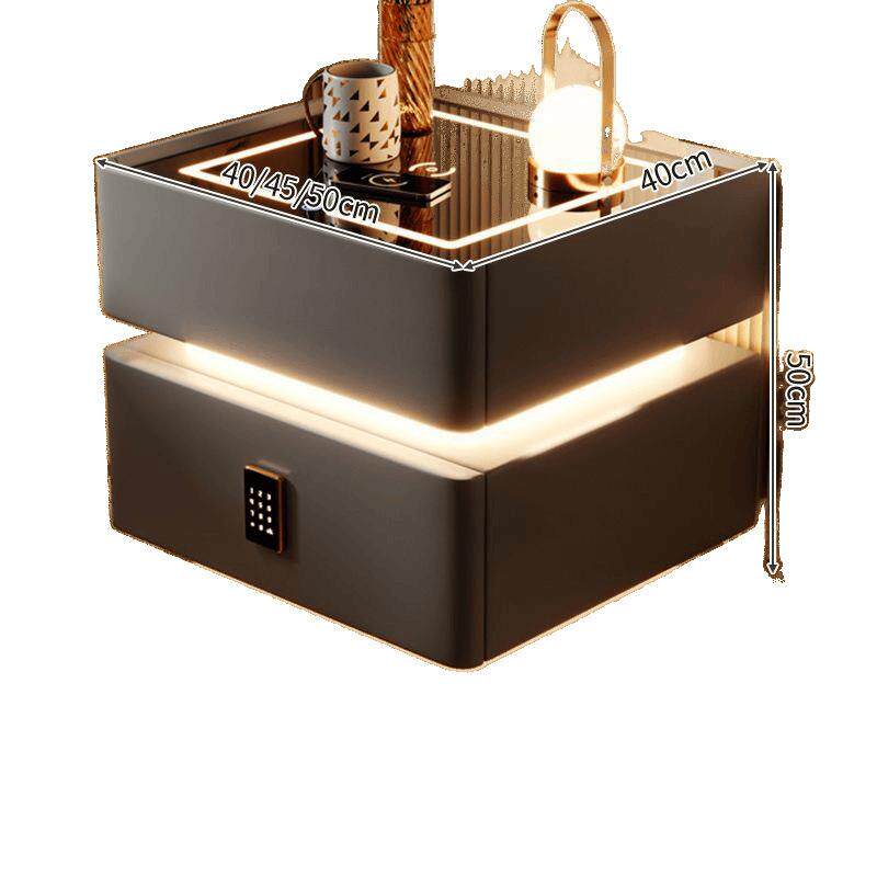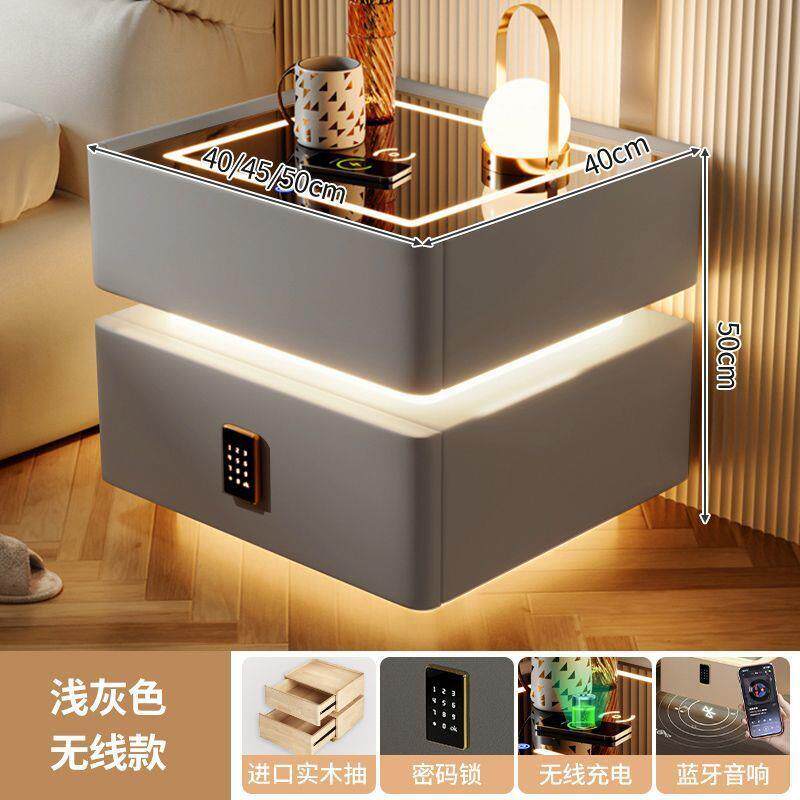 智能床头柜现代简约实木带灯卧室轻奢多功能无线充电蓝牙智能床柜
