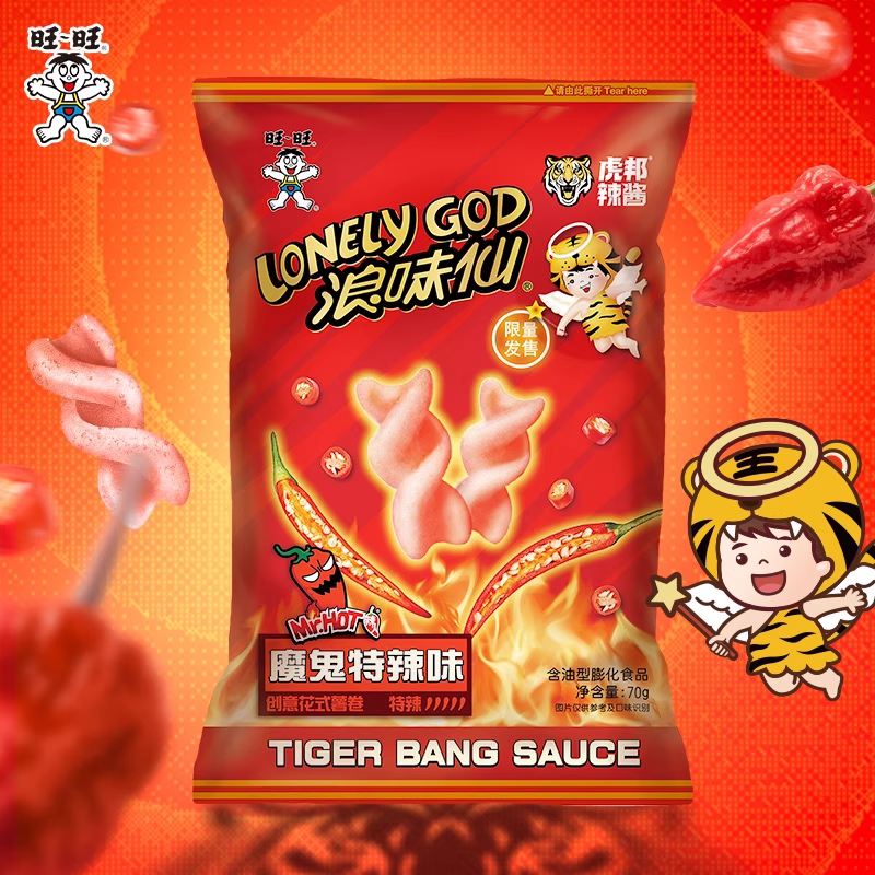 薯片旺旺浪味仙虎邦联名款魔鬼芝士球休闲零食膨化蒜香蔬菜味聚会