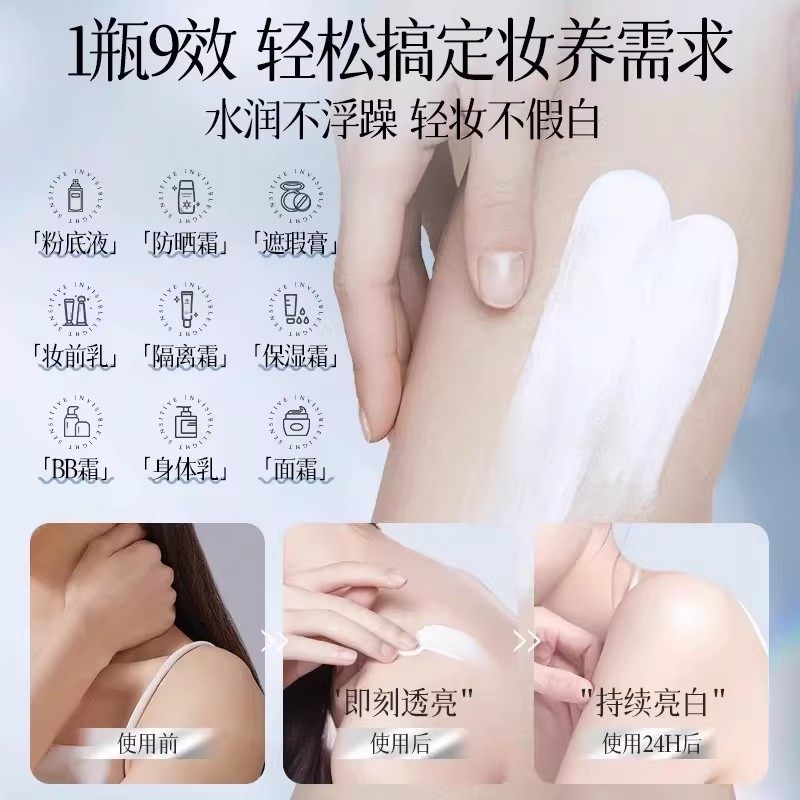 懒人素颜霜脸部身体裸妆美白隔离遮瑕三合一持久正品防晒霜身体乳
