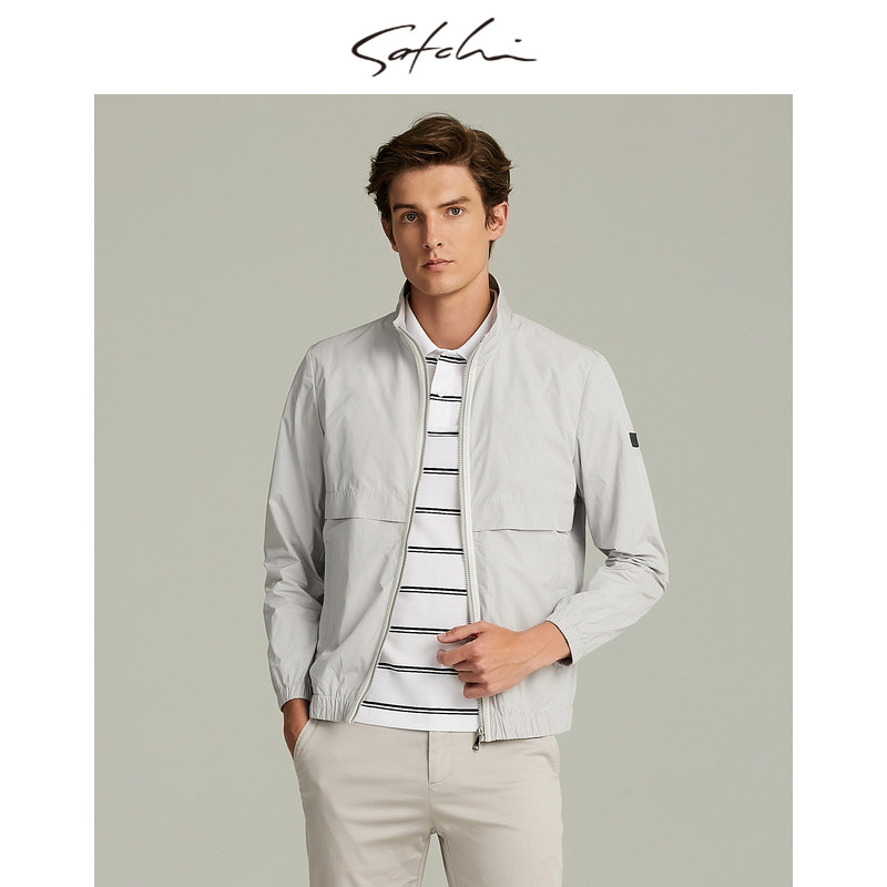 SATCHI沙驰男装商场同款男士夹克立领耐皱纯色外套88SAB8341014