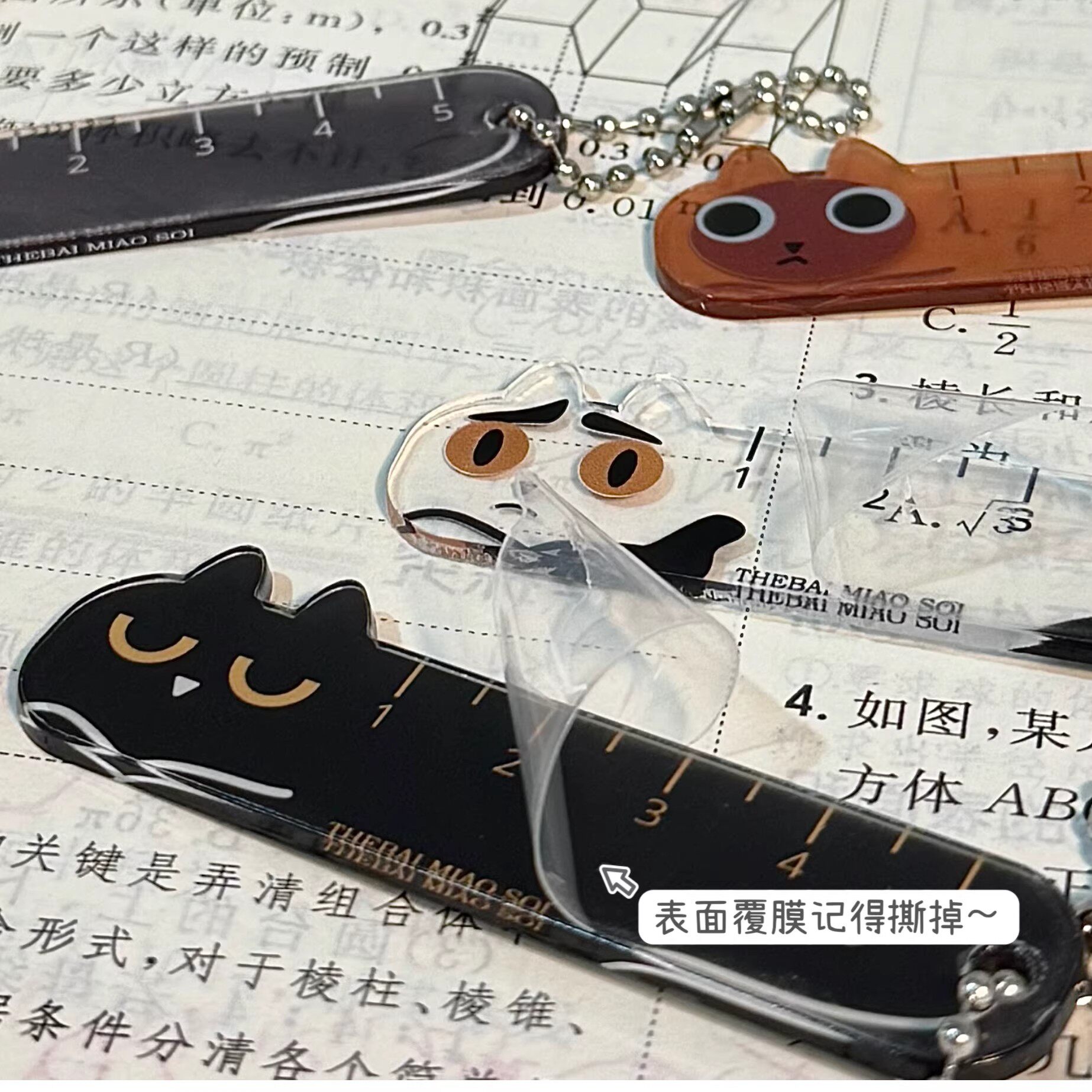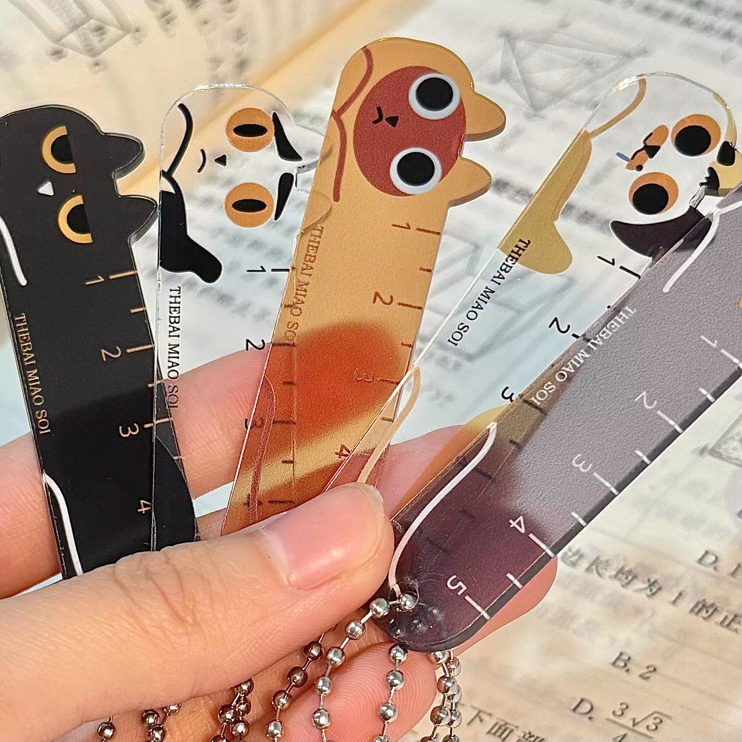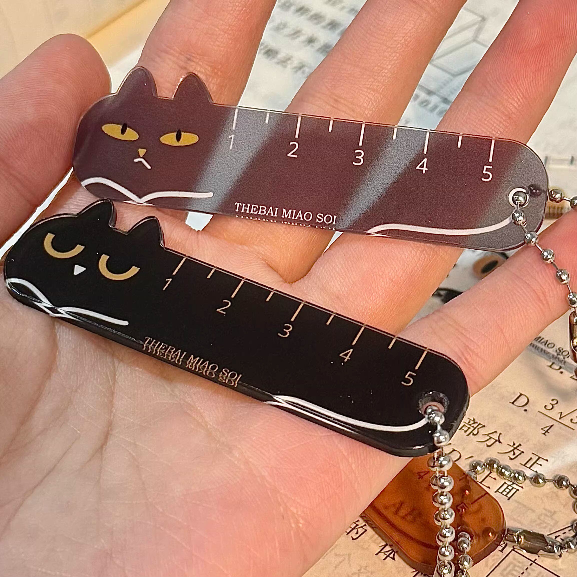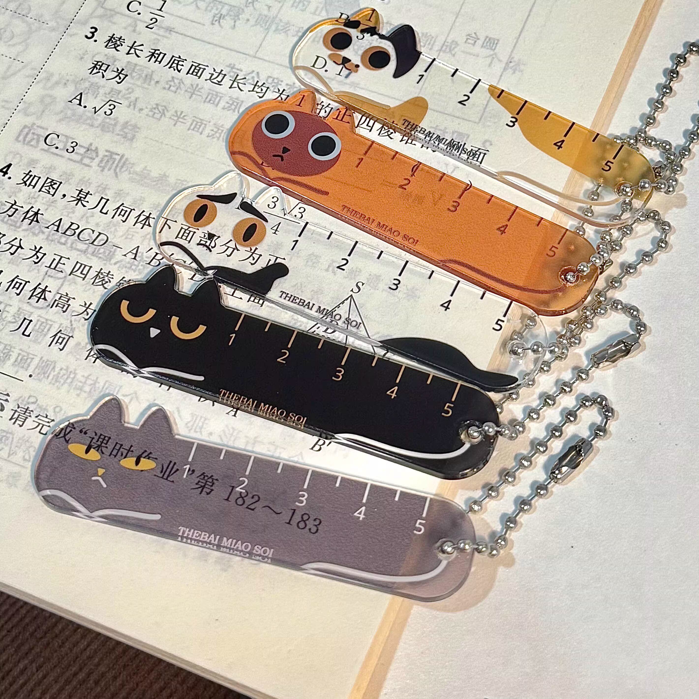新款掌心尺卡通猫咪小尺子透明手账尺高颜值学生儿童尺子书包挂件