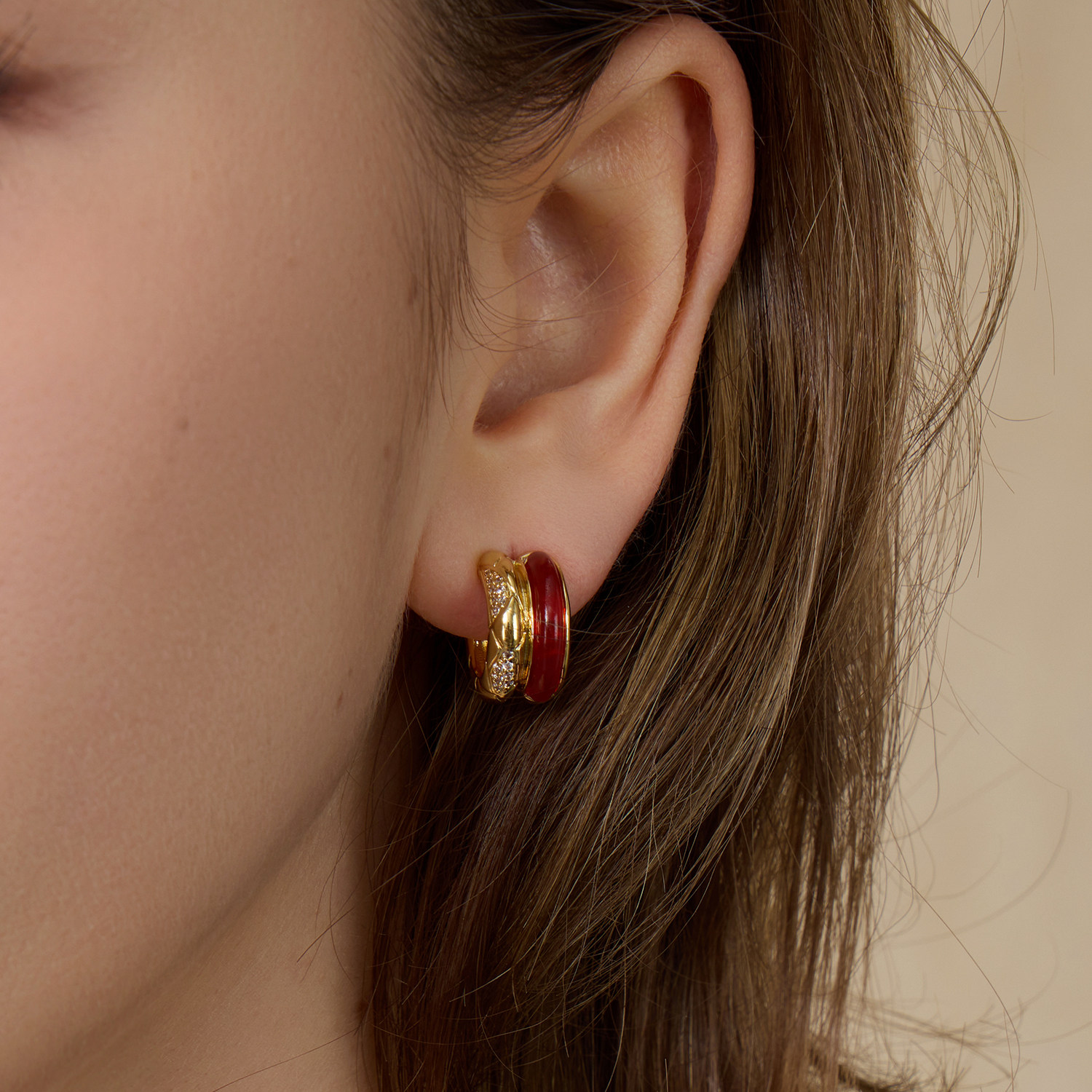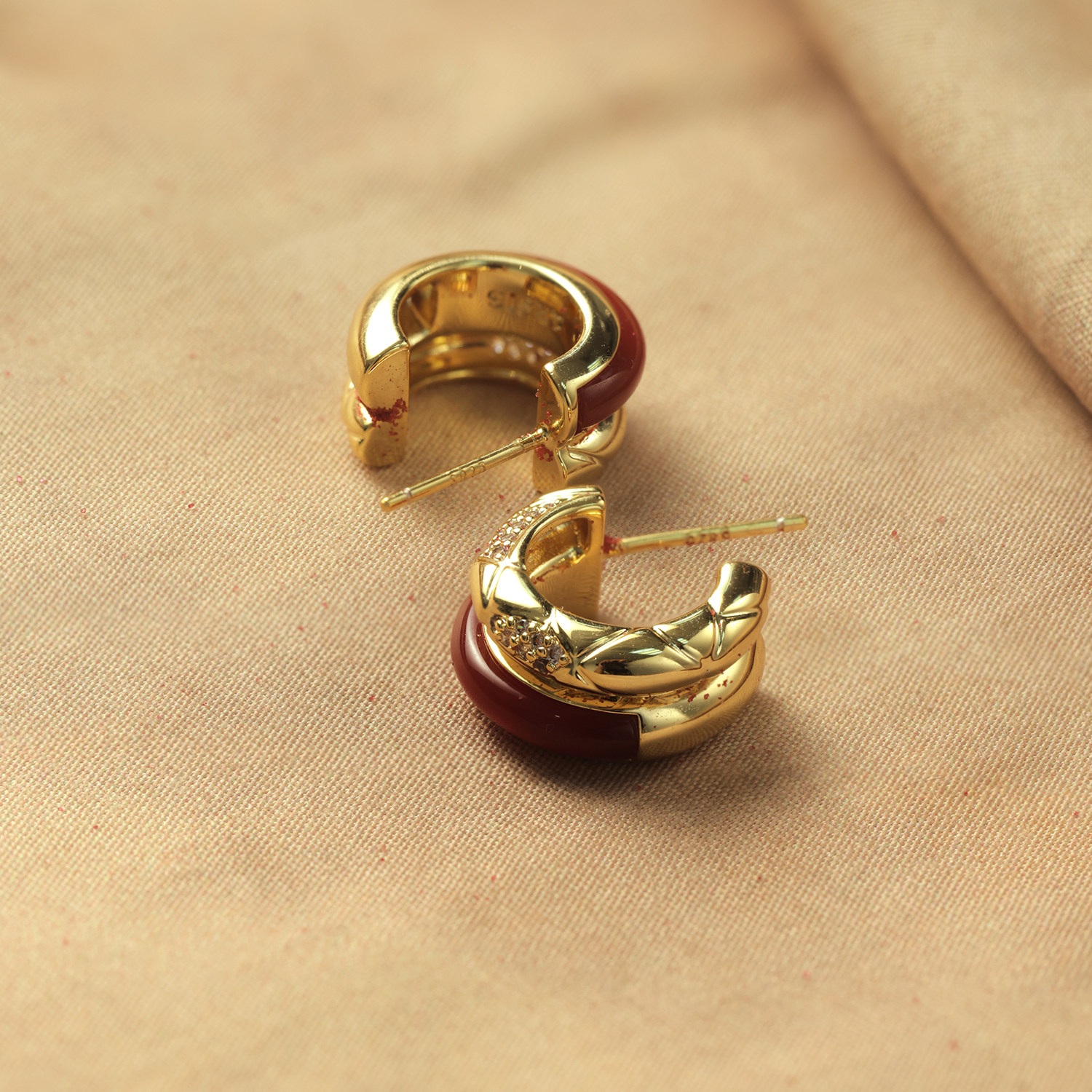 999纯银耳针耳环圈圈大圈秋冬红色耳饰女耳圈高级感轻奢素圈耳夹