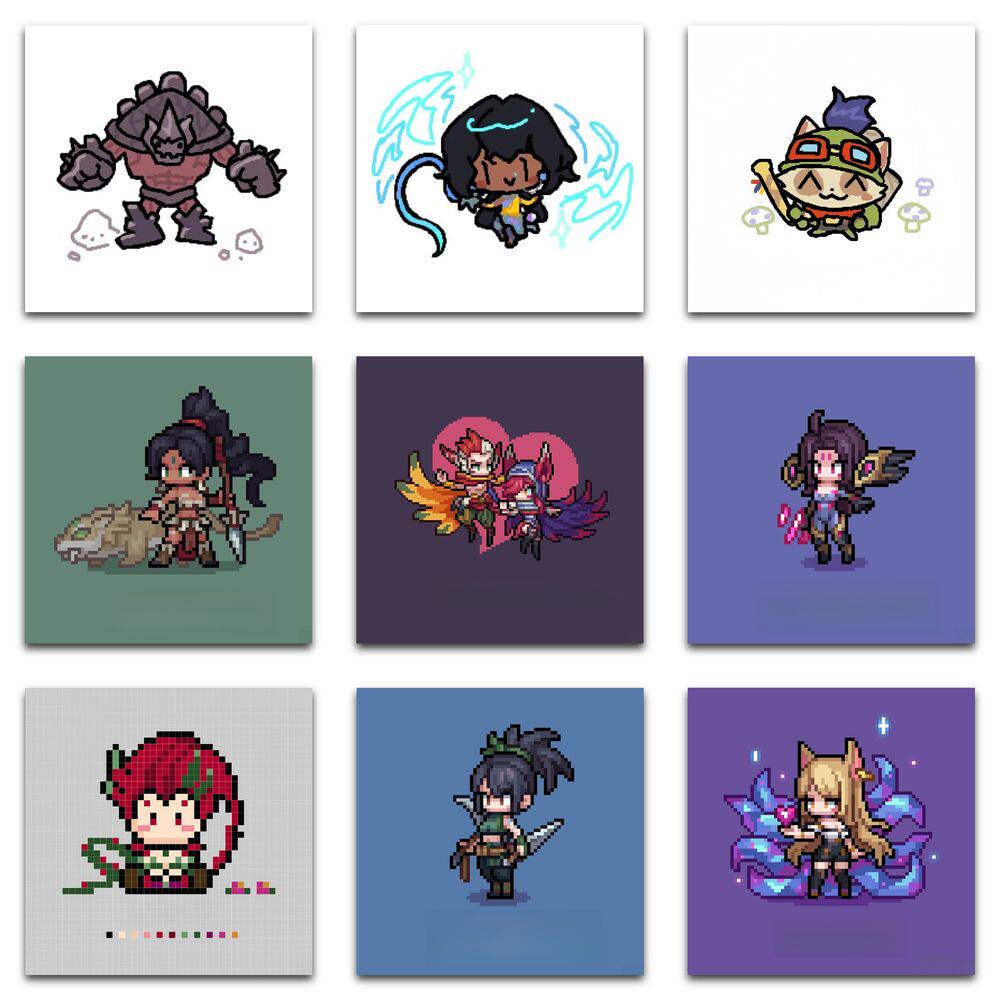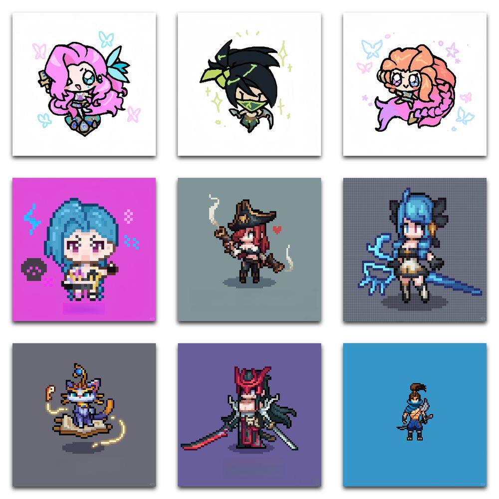 177张英雄联盟卡通小人贴纸爆爆格温托儿索永恩装饰小图案diy贴画