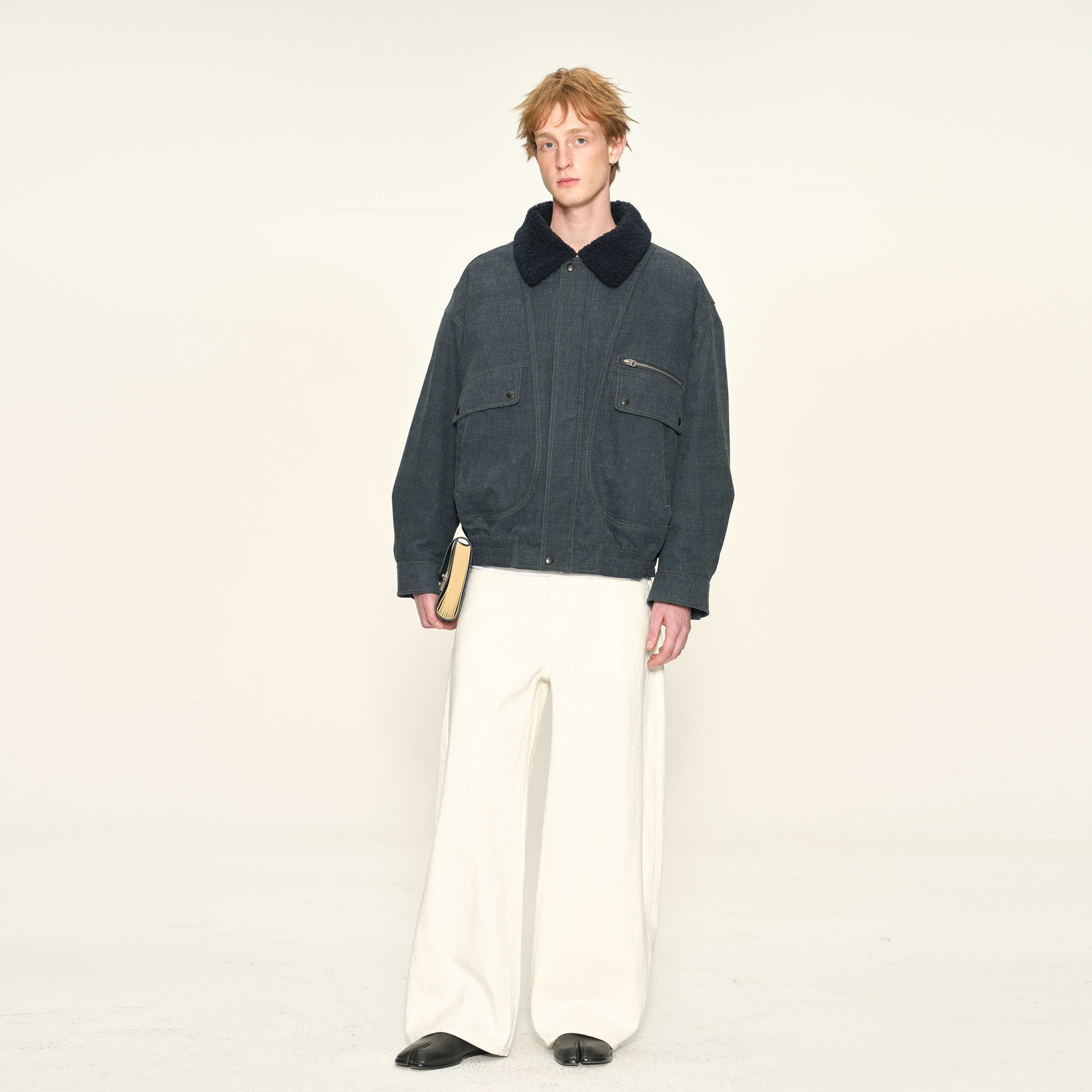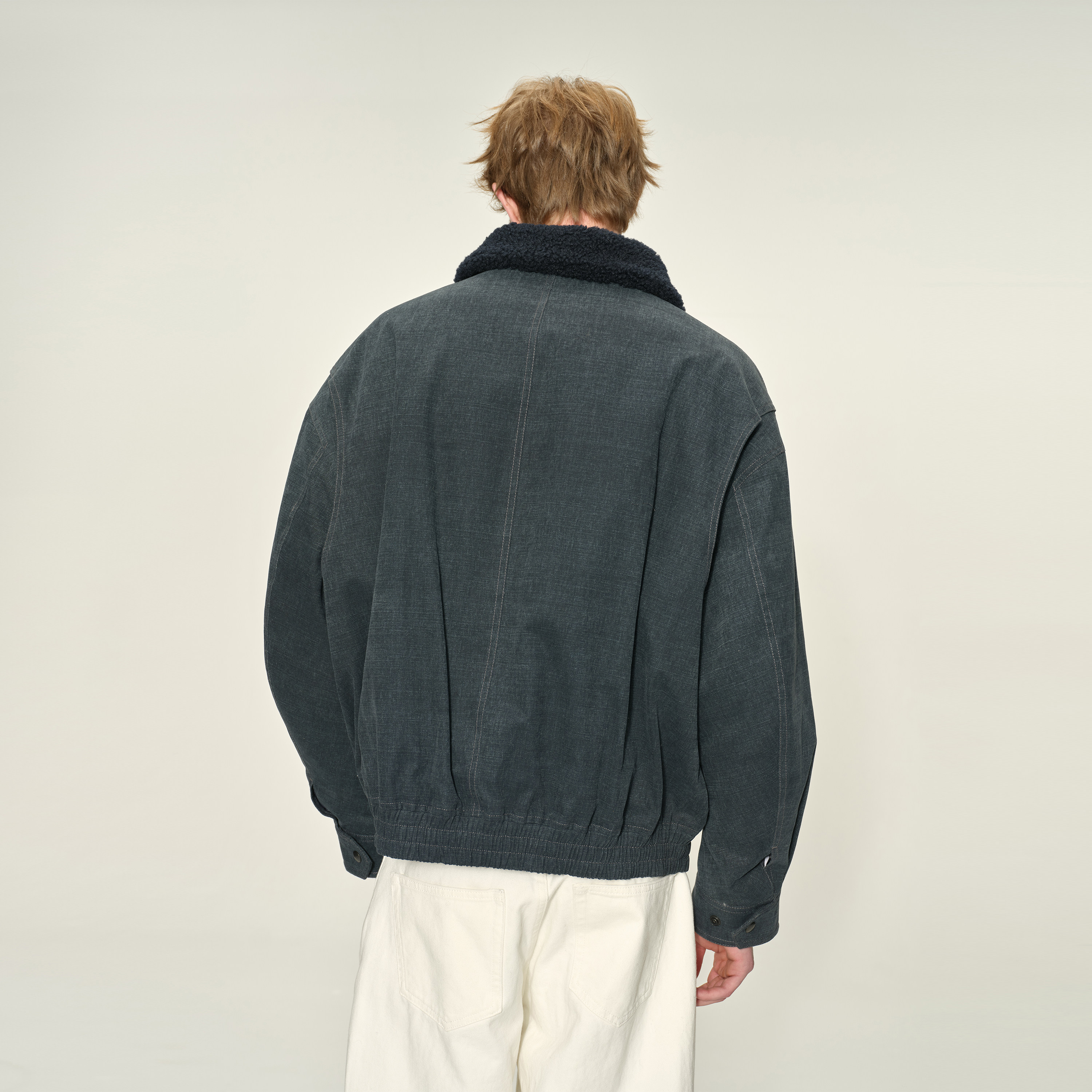 DUPU杜朴 仿牛仔复古水洗毛领棉夹克 羊羔毛实用口袋做旧棉服外套