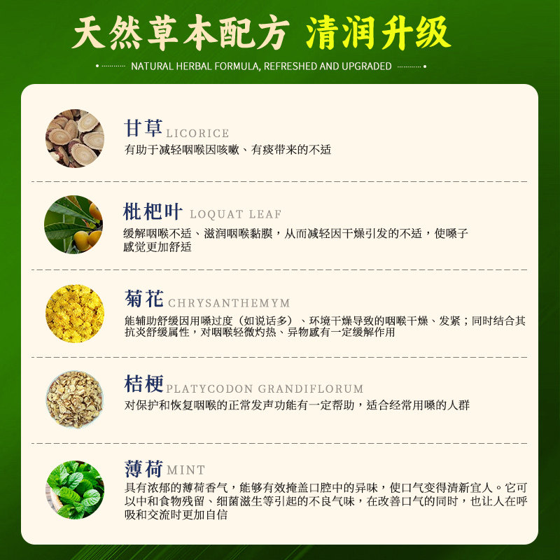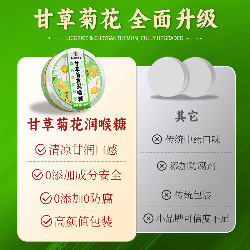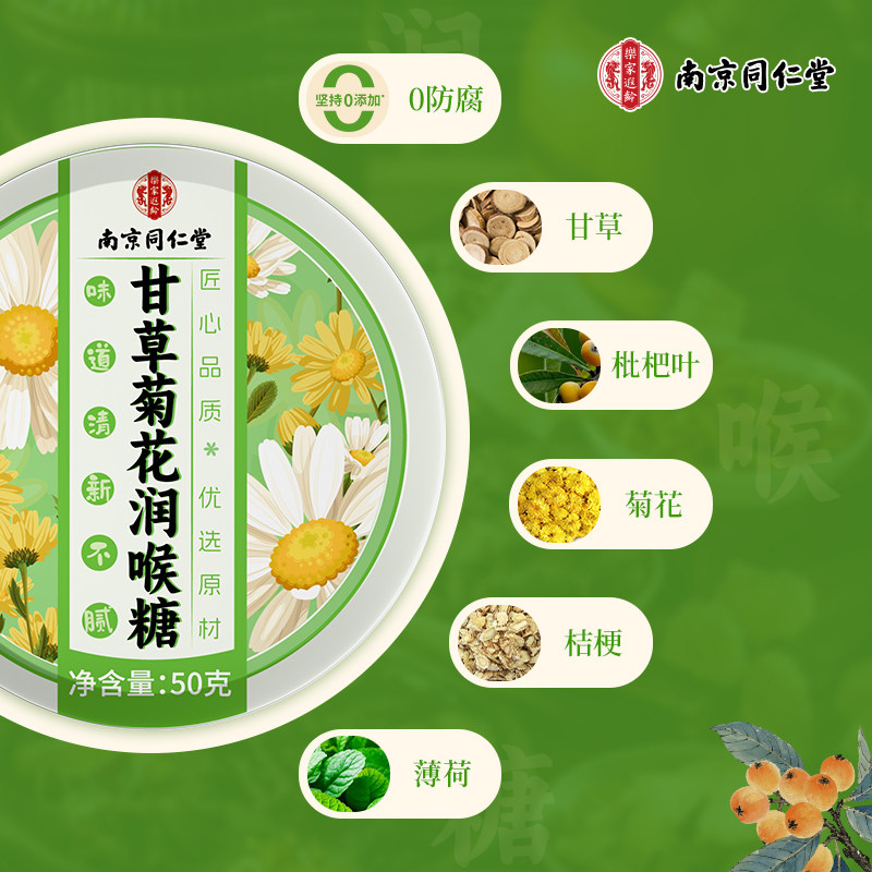 南京同仁堂润喉糖草本护音口气清新薄荷劲凉甘草菊花清润糖