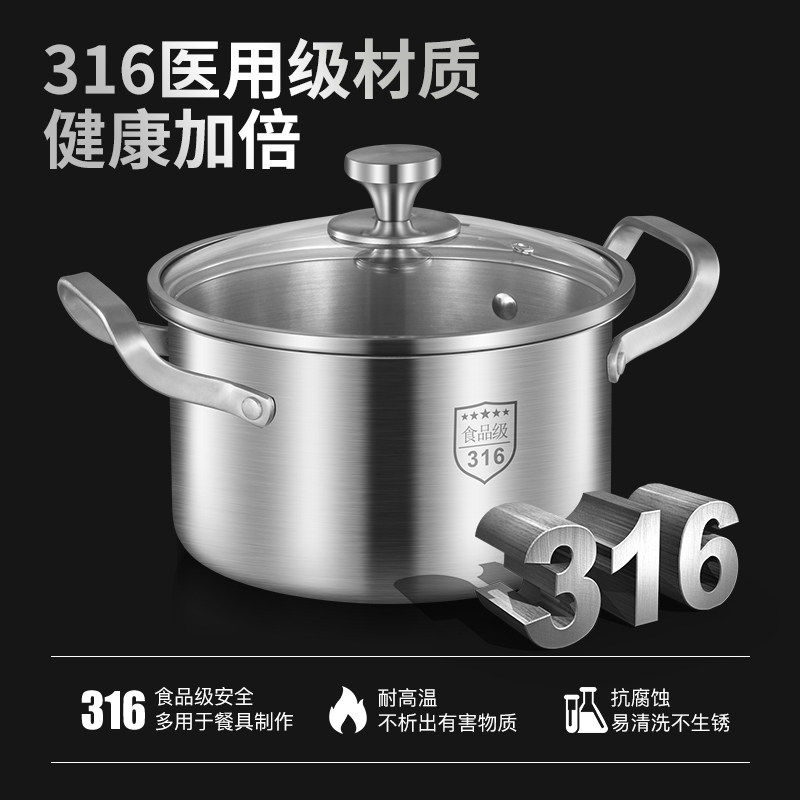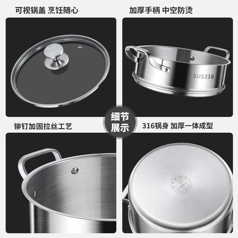 苏泊尔蒸锅家用 德国316不锈钢汤锅一体加厚小锅双层蒸屉双耳带蒸