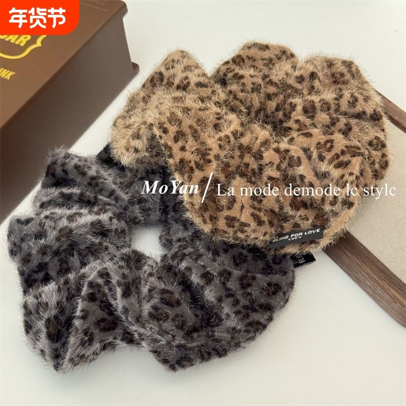 秋冬灰咖豹纹毛绒大肠发圈复古简约大号头花低马尾发绳气质扎头绳