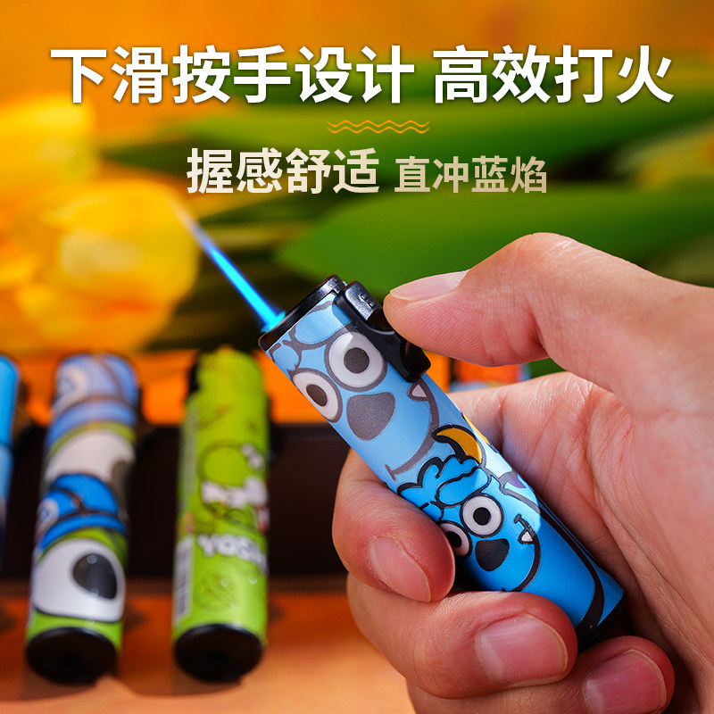 防风打火机金属圆柱防爆耐用可充气一次性可爱卡通包画商超批发
