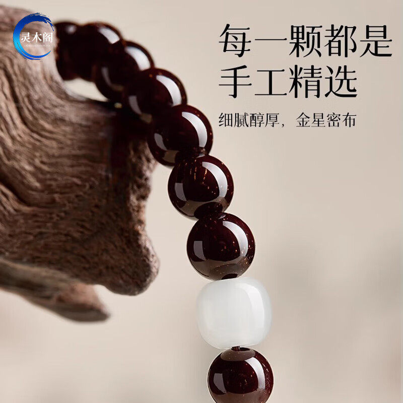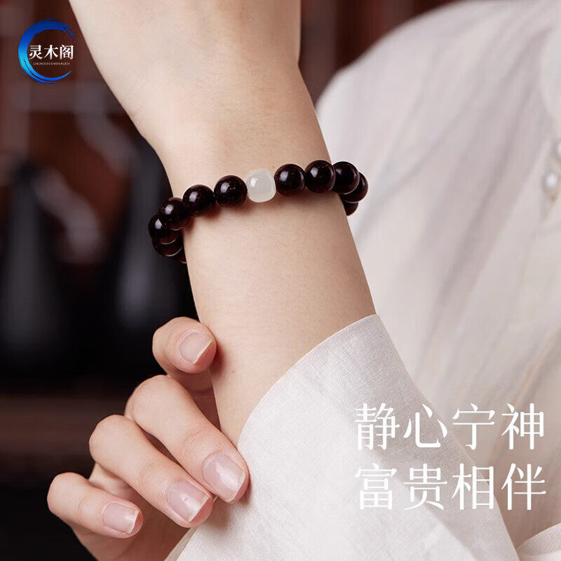 真天然印度小叶紫檀手串檀香紫檀木质佛珠男女士和田玉转运珠手链