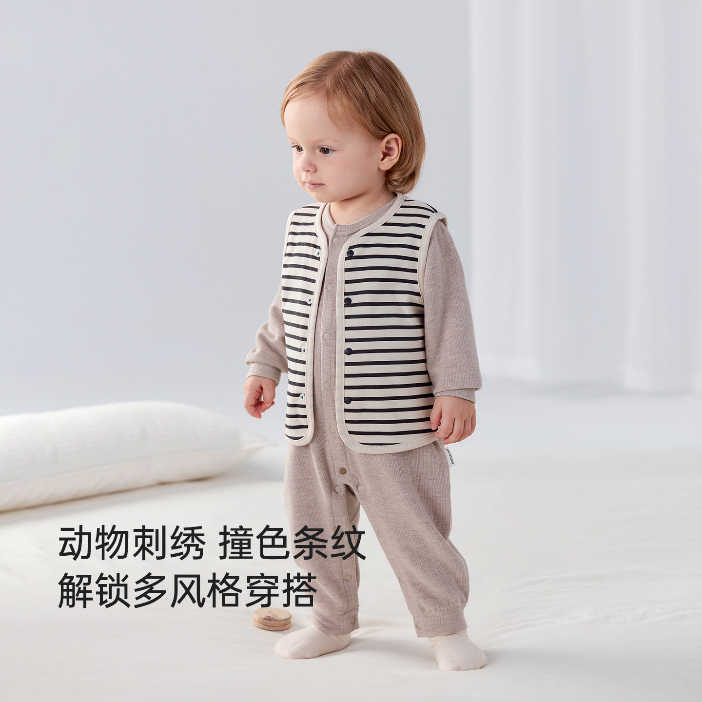 babylove婴儿马甲春秋季男女宝宝纯棉背心外穿条纹双面穿百搭坎肩