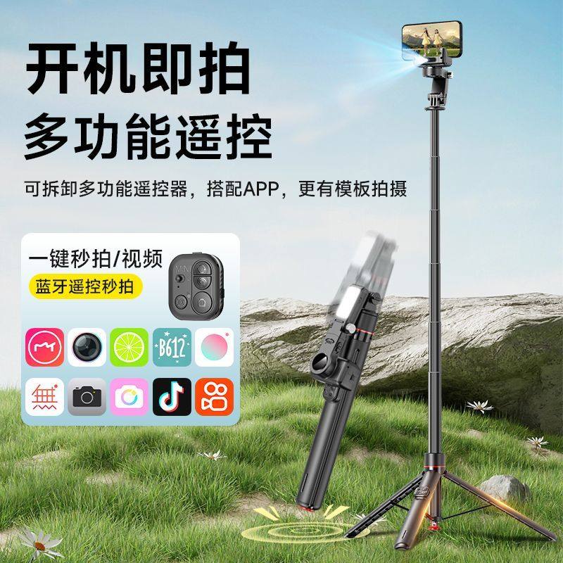 叠品A21P2025新款金属多功能补光自拍杆三脚架遥控拍照神器手机直播支架360°旋转拍照抖音蓝牙便携式防抖