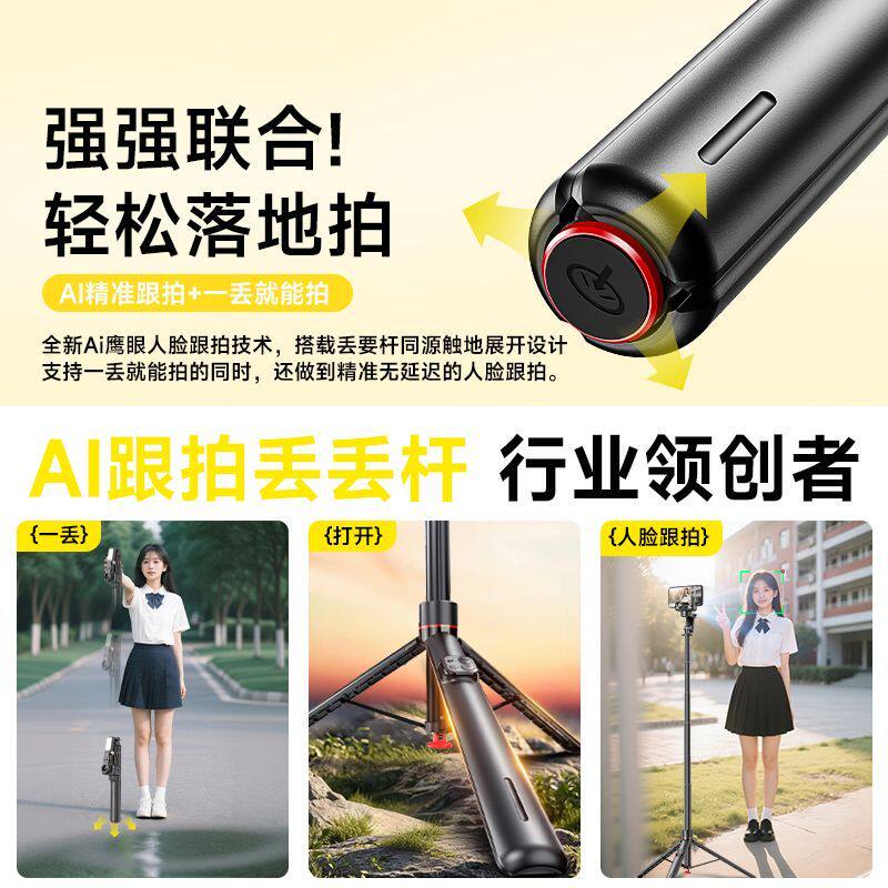 自拍杆落地三脚架智能云台跟拍神器360全自动旋转通用直播支架手机专用演唱会拍摄自拍神器全自动跟拍丢丢杆