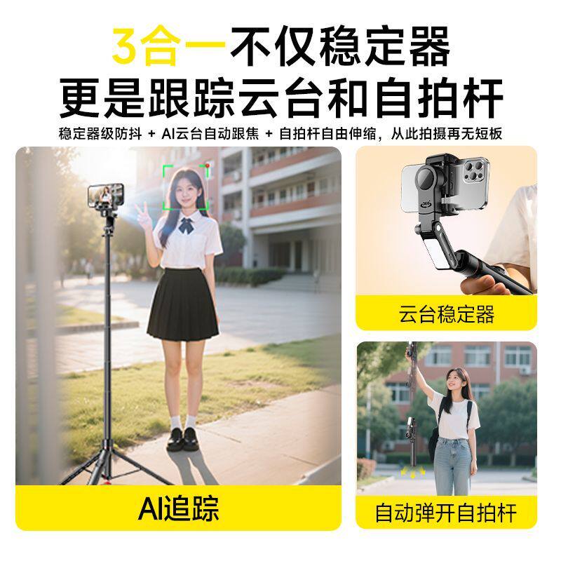 叠品A21P防抖手机户外拍摄支架自拍杆2025新款通用三脚架360旋转直播拍照神器抖音专用蓝牙一体式金属稳定器