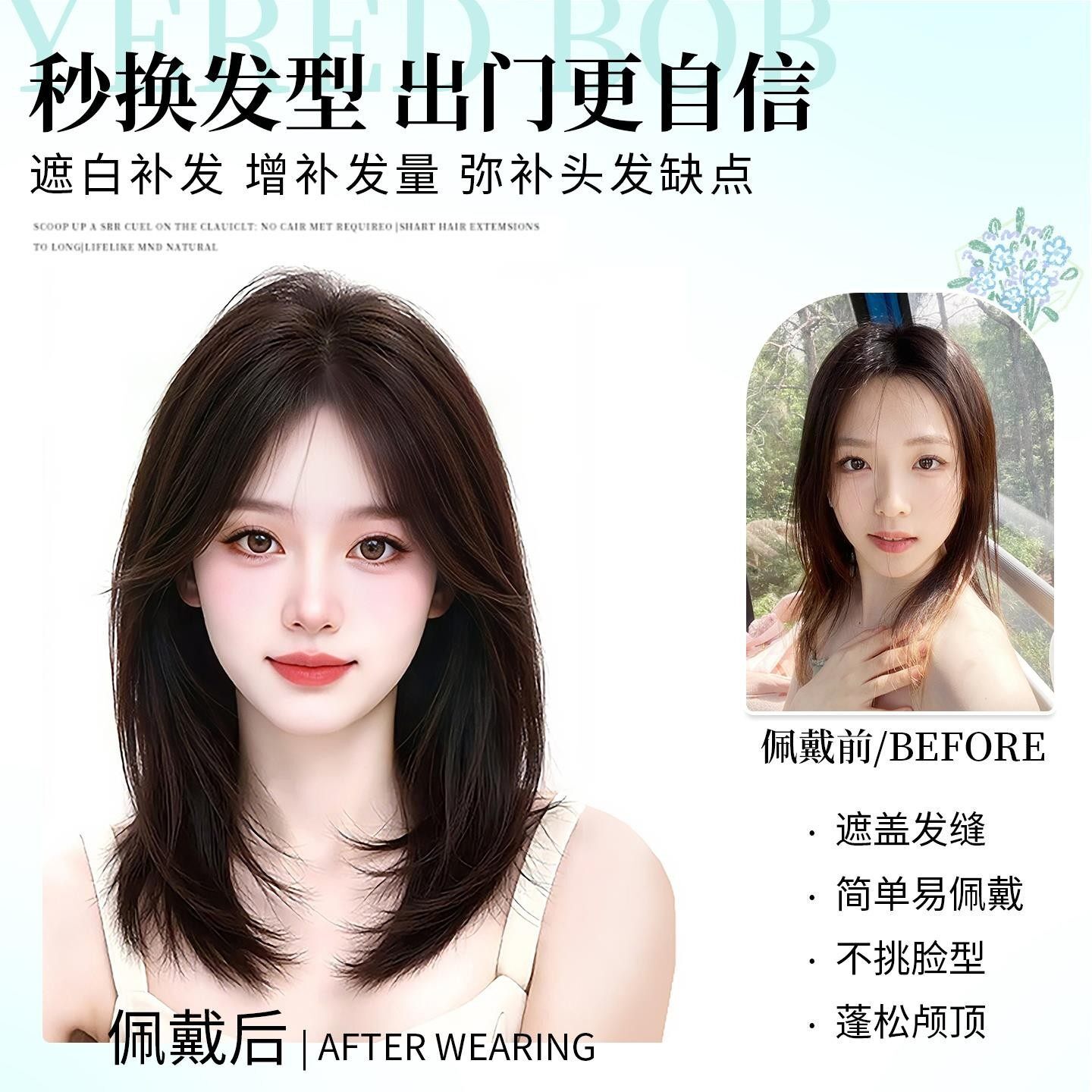 不用戴发网假发女片头顶补发遮白发增发量蓬松锁骨假发片刘海前额