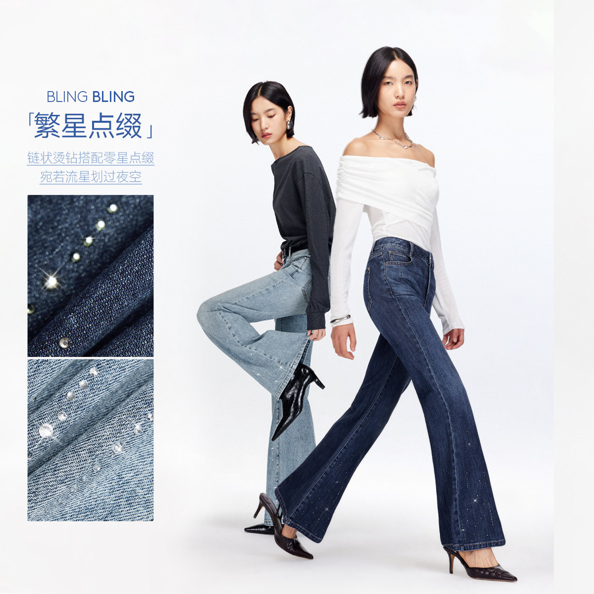 【流星雨】Vero Moda牛仔裤女25秋季新款钻饰简约微喇裤精致时尚