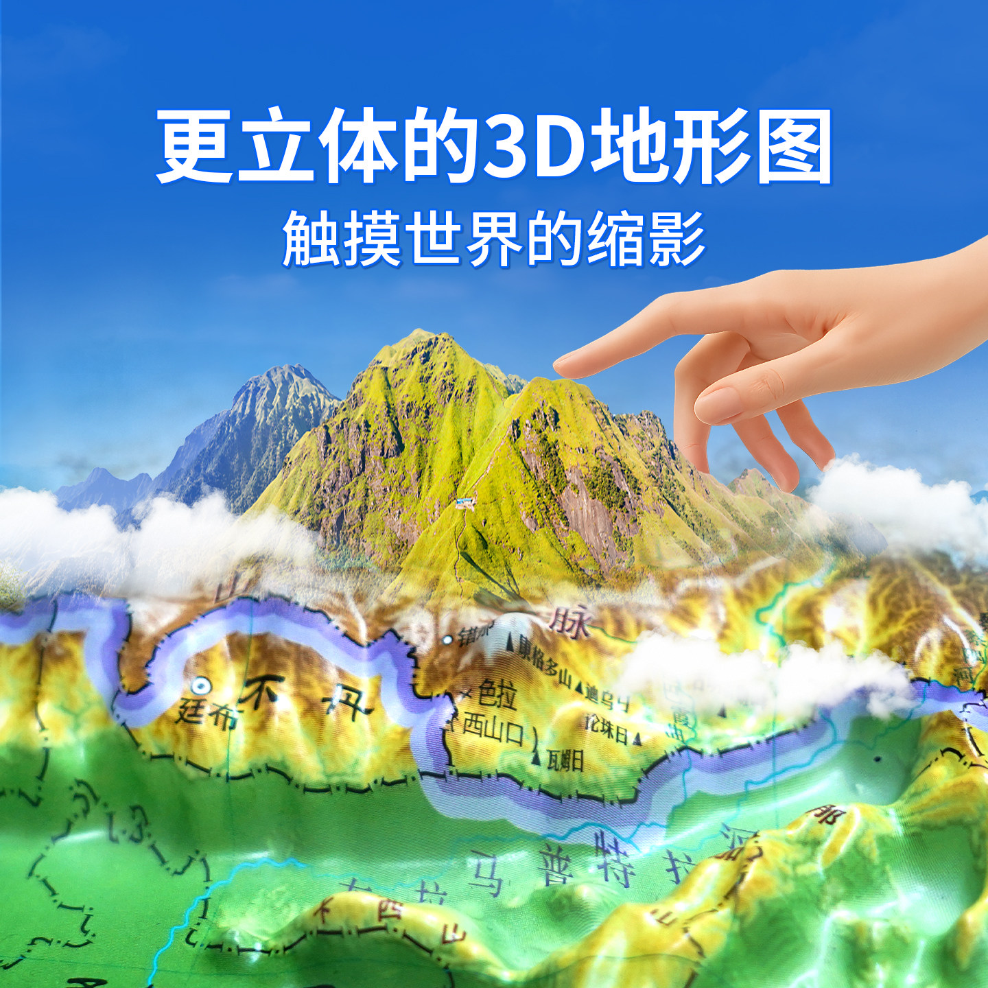 【晨光地形】2025世界地形和中国地形地图共2张3d立体凹凸地形图浮雕地图挂图初高中学生用地理教学家用墙贴