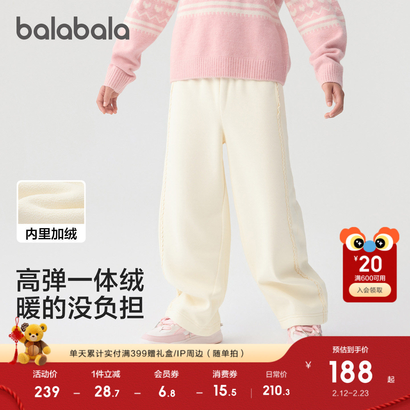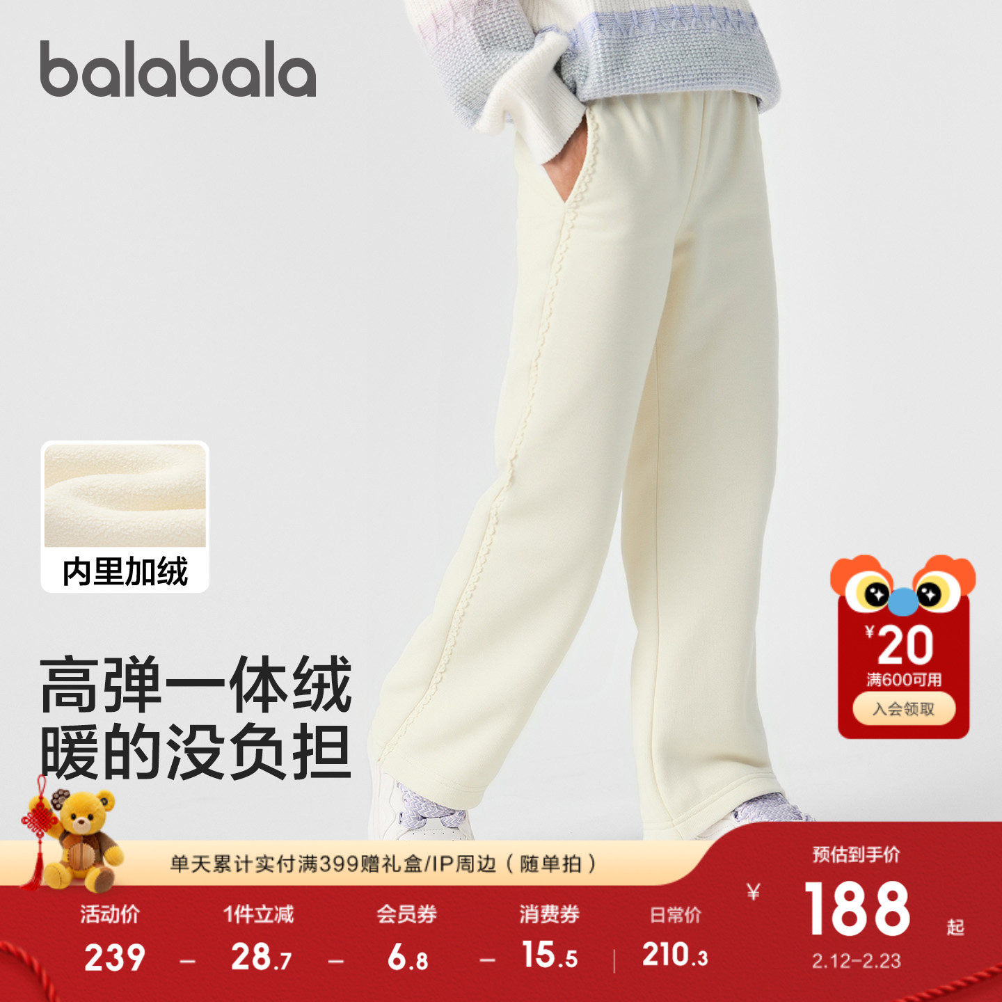 【商场同款】巴拉巴拉童装儿童加绒裤子女童直筒裤2025冬新款保暖